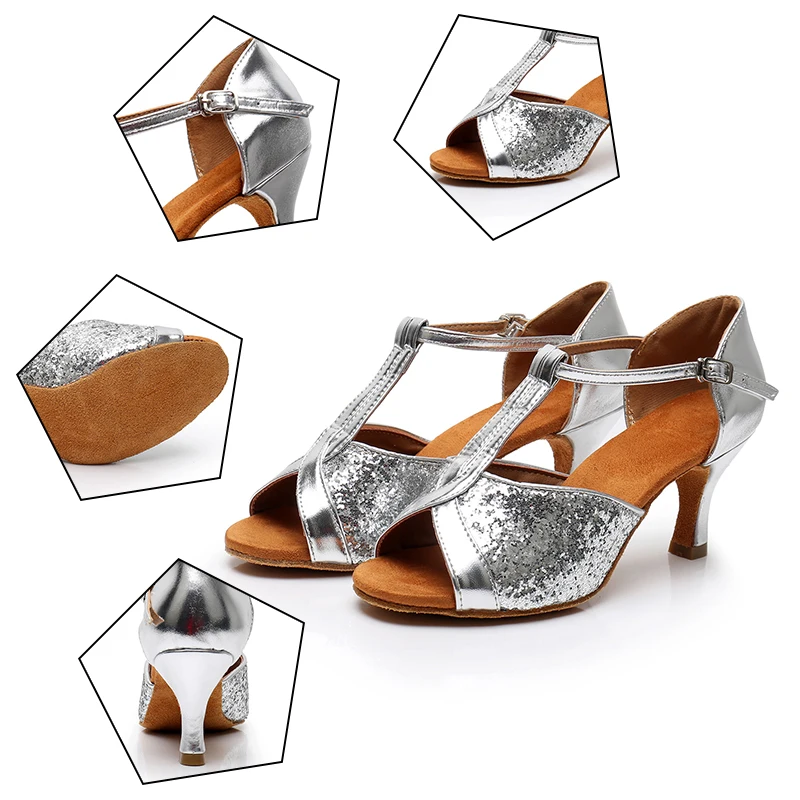 Туфли для латиноамериканских танцев, с закрытым носком и блестками