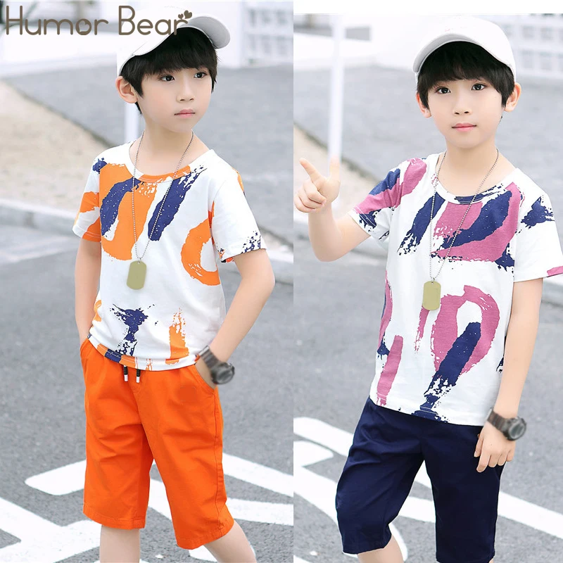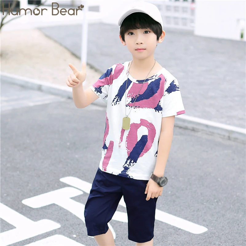 Костюм Humor Bear для мальчиков, одежда для маленьких мальчиков, корейский стиль, новинка, летний комплект детской одежды, в полоску, детские брюки, костюм из 2 предметов для мальчиков