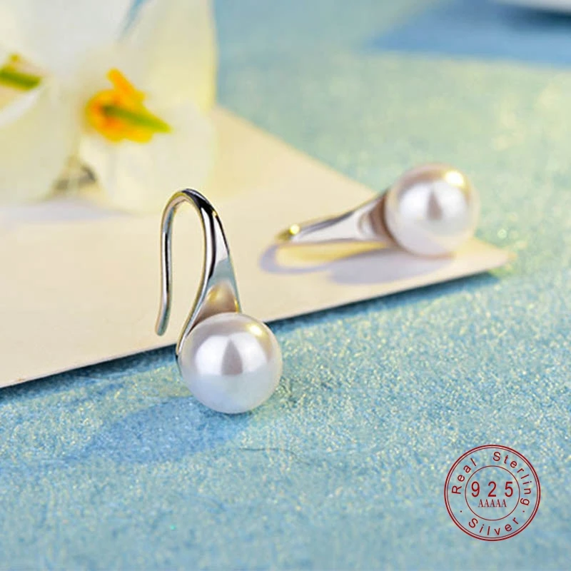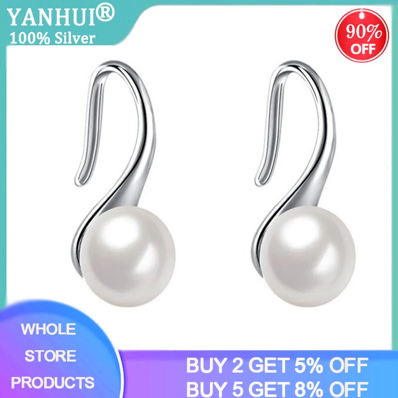 YANHUI Серебро 925 серьги для женщин большой 8 мм Серьги из натурального жемчуга, хорошее ювелирное изделие, классические серьги-гвоздики для девочек элегантные подарки