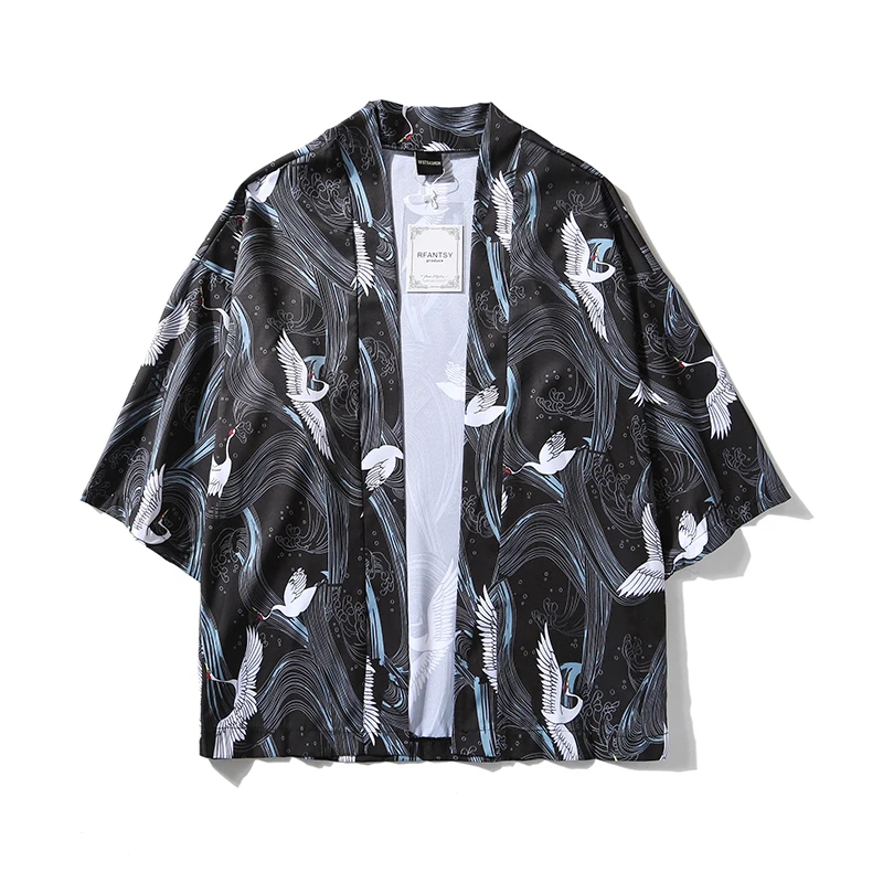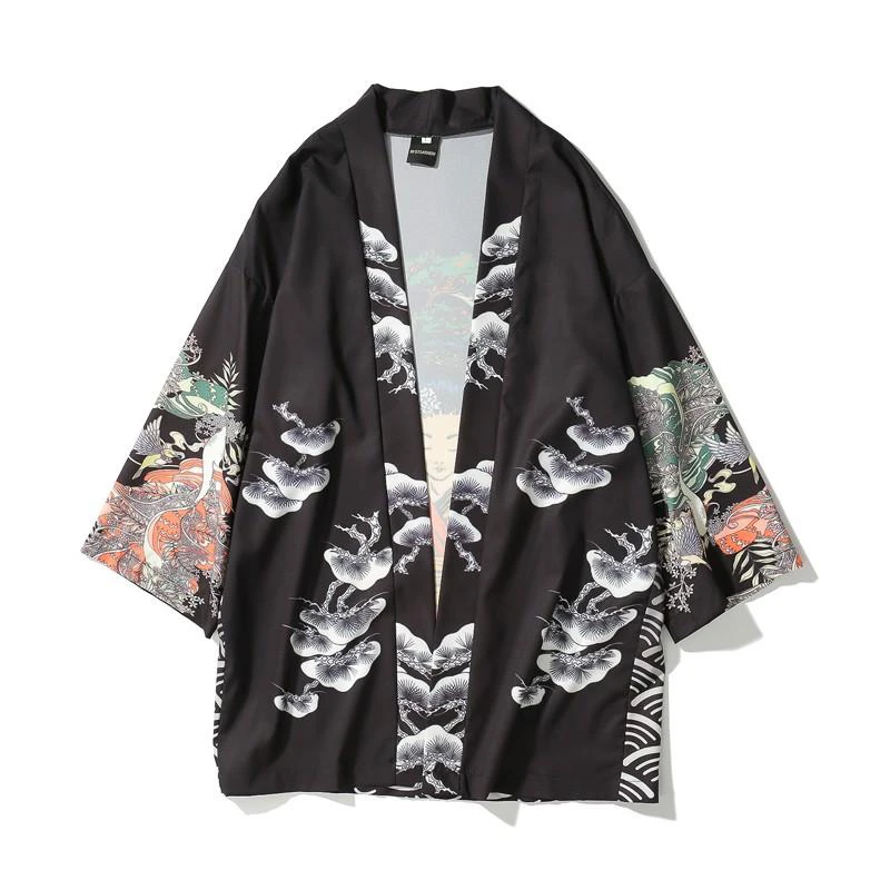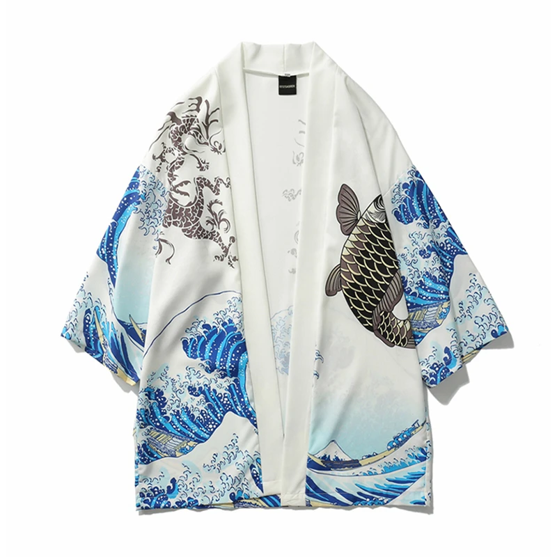 Кимоно мужское с принтом, модная рубашка в японском стиле, кардиган...