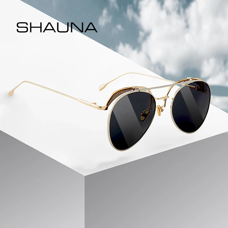 Мужские и женские очки в стиле стимпанк SHAUNA, поляризационные солнцезащитные очки в металлической оправе, с защитой от сисветильник, UV400