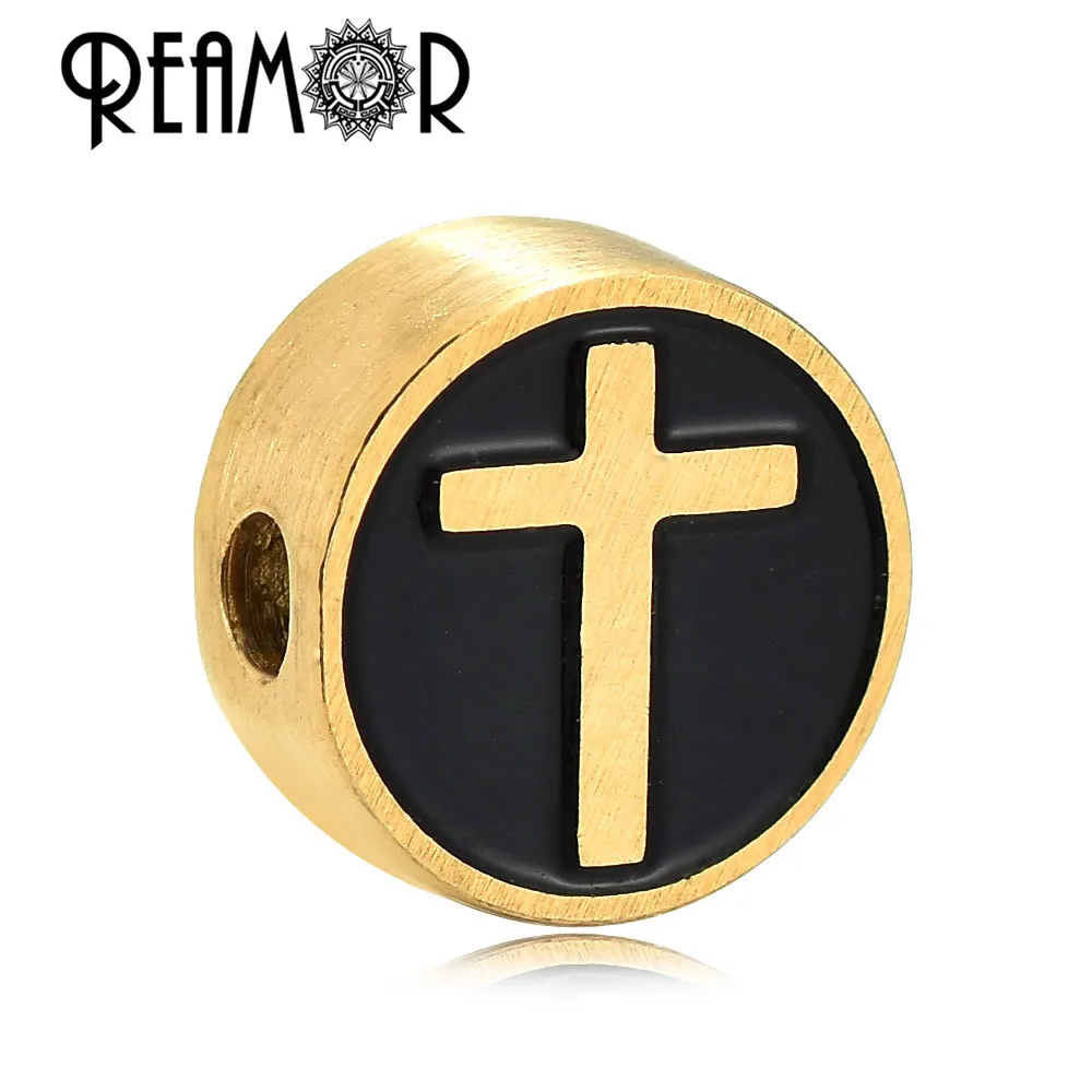 Круглые бусины с золотым покрытием REAMOR, круглые бусины-разделители из нержавеющей стали 316l для самостоятельного изготовления браслетов, украшений