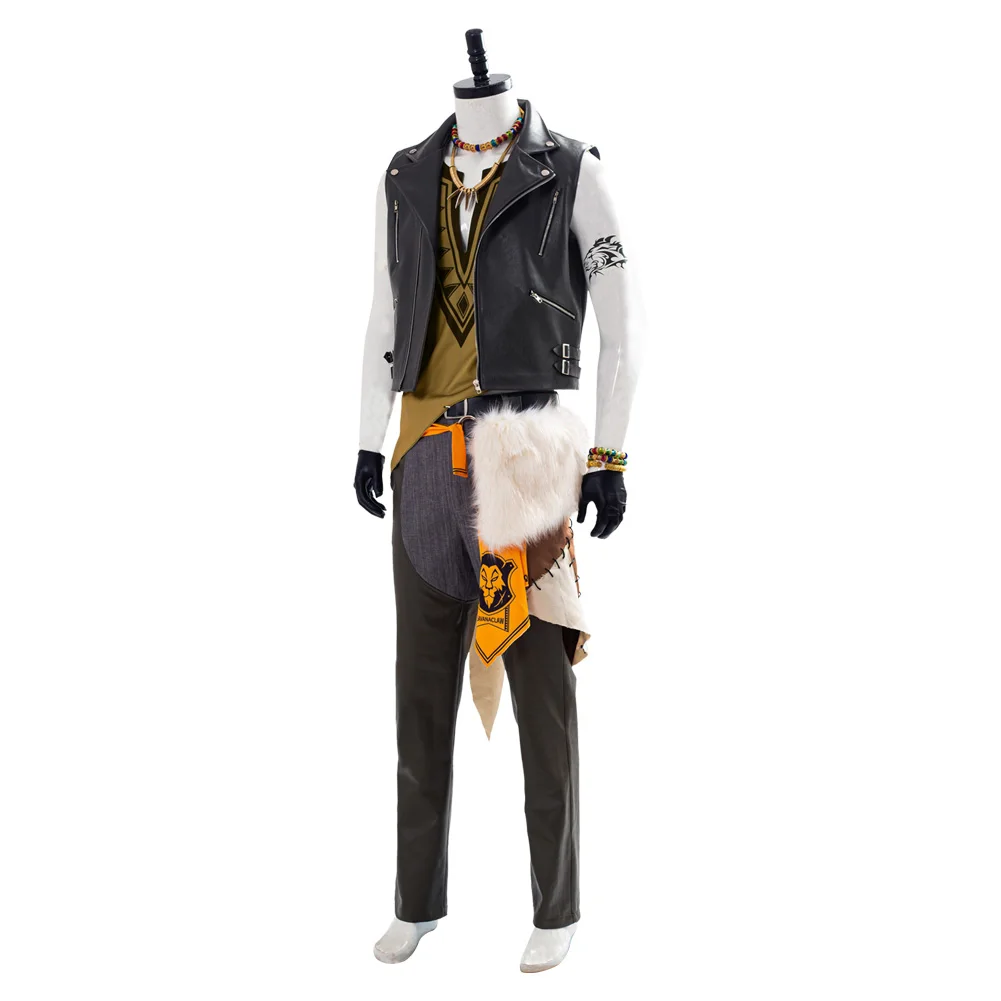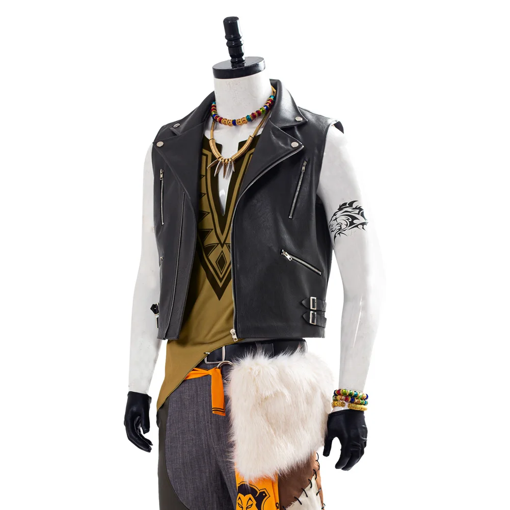 В комплекте: ремень + браслет * 3 + перчатки + шарф на бедрах + ожерелье * 3 + тату-паста + брюки + жилет + украшение на талию