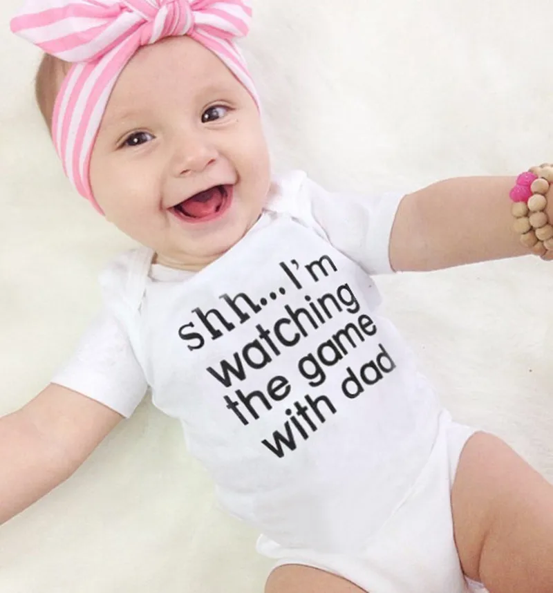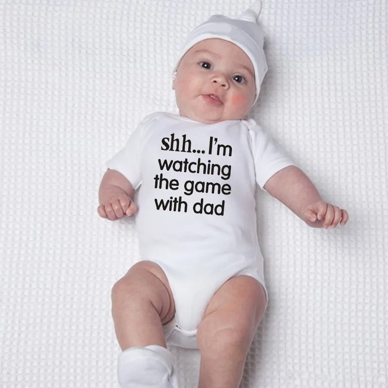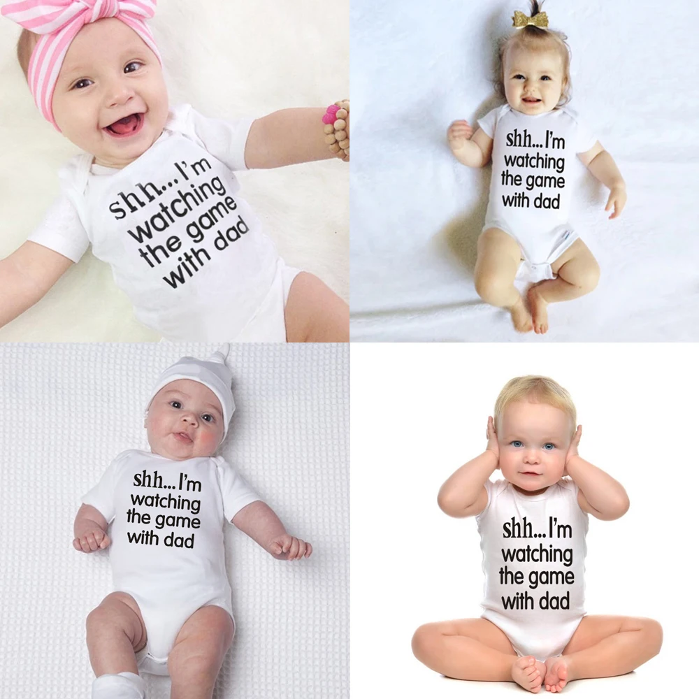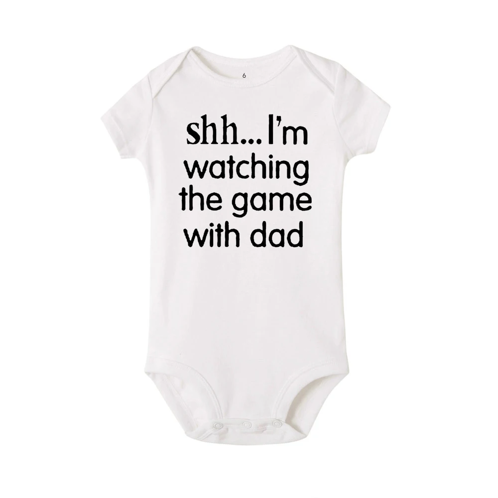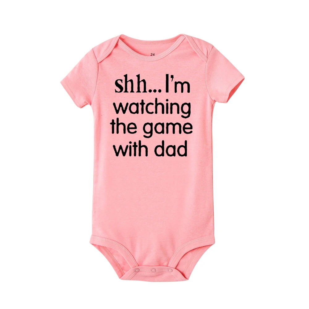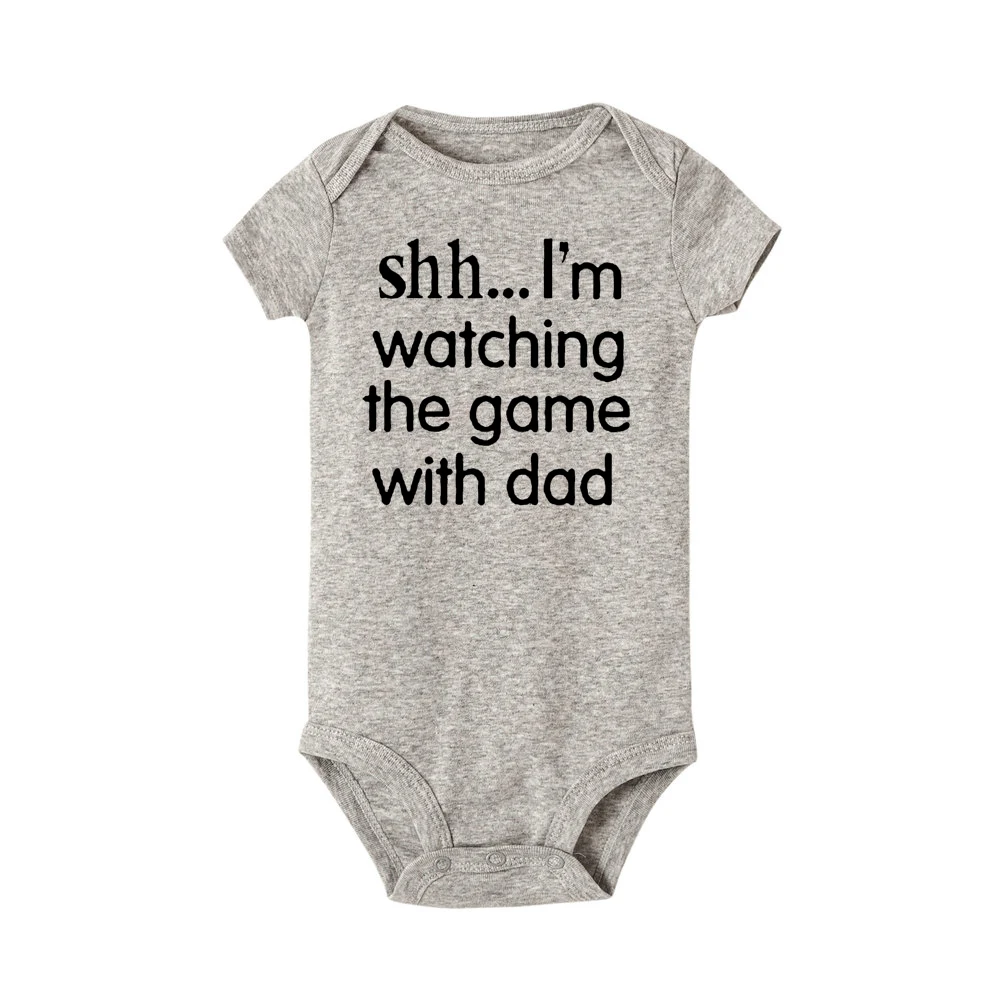 Боди с надписью «Shh I'm Watching The Game With Dad» для новорожденных, боди с короткими рукавами для маленьких мальчиков и девочек