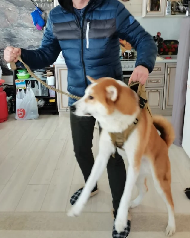 Шлейка хорошая ,качество тоже . Отправили быстро и доставка быстрая . На американскую акиту размер xl подошёл даже есть запас .