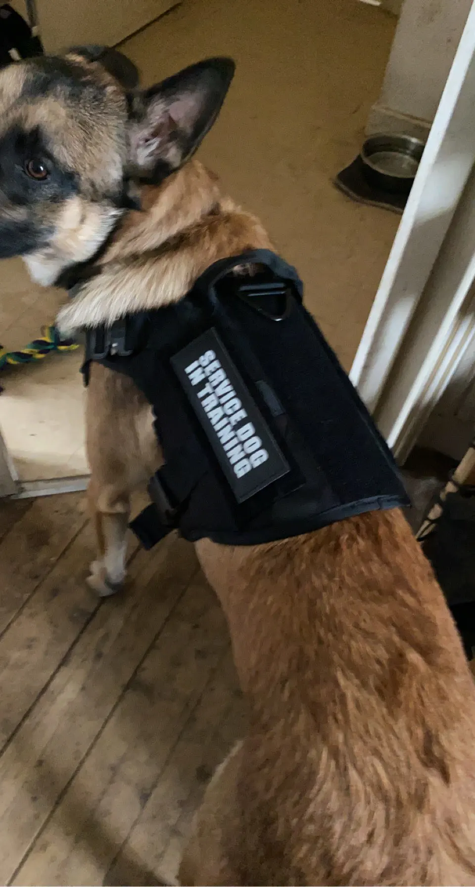 Очень хорошо подходит для узкой немецкой овчарки! Сидит идеально... Надеюсь, что он не распадется