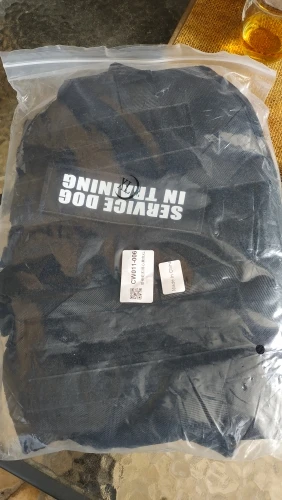 Пришло быстро (около 2 недель, в пункт выдачи Пятёрочки) Качеством довольна! Всё хорошо прошито, плотная ткань. В подарок дали шильдик - чёрную липучку. Заказывали ошейник и жилет - всё соответсвует размерной сетке. Ремешки регулируются у ошейника и жилета по размеру. Взяла самый большой размер на восточно-европейскую овчарку: щенок уже набрал свой основной рост, но ещё подрастёт и запас в регулировке есть.