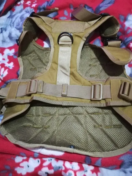 Genial, mi perro pesa unos 22-23 kg, tiene 4 puntos para ajustar, 2 puntos de anclaje, y también para poner cosas personalizadas con velcro