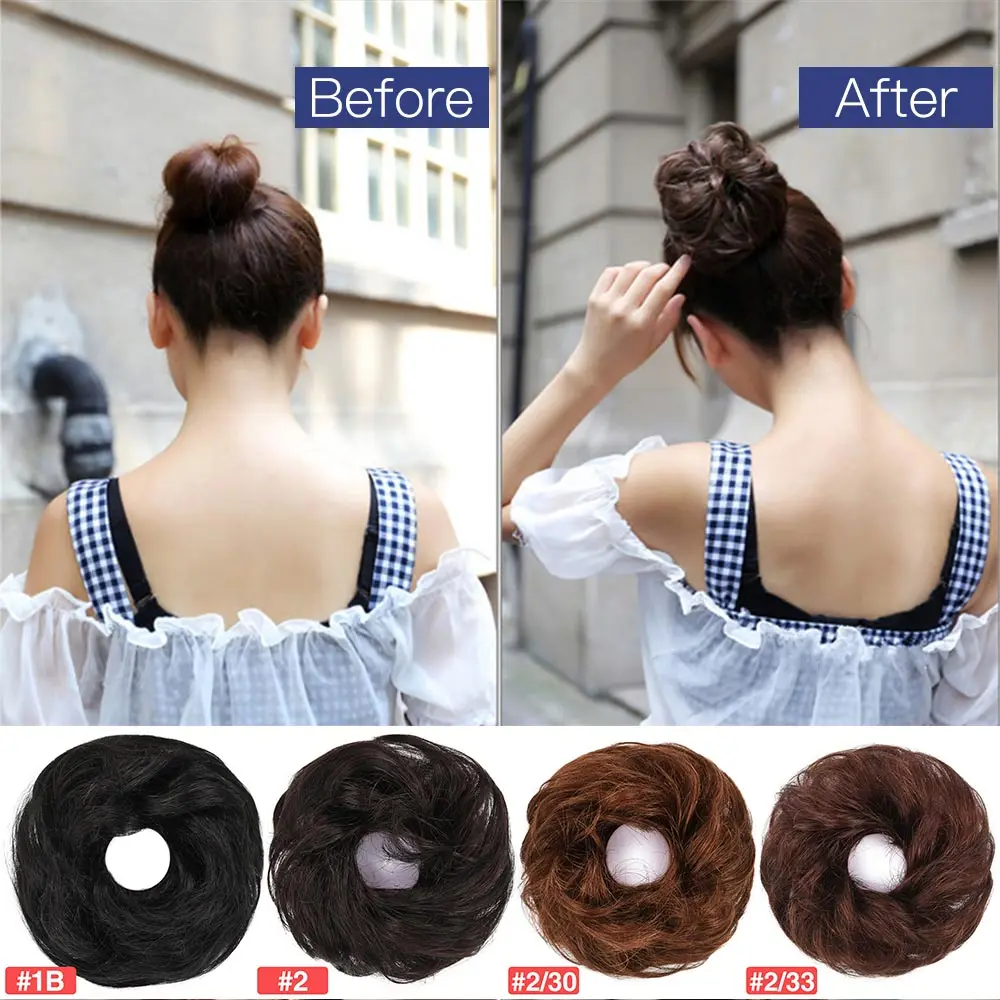 Шикарная эластичная лента, человеческие волосы, шиньон, конский хвост, волосы для наращивания и парики, человеческие волосы, грязный пончик-шиньон, эластичная резина, хорошая