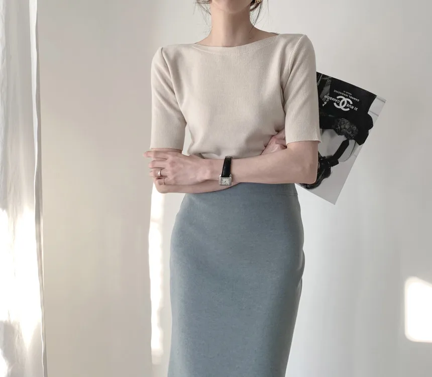 Футболка женская трикотажная, с круглым вырезом, в Корейском стиле