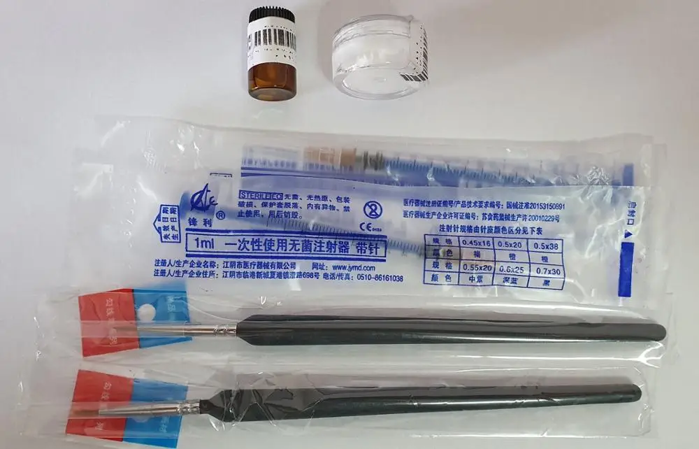 Товар прибыл по запросу. Также пришел шприц с иглой и щеткой (очень красиво) в упаковке.