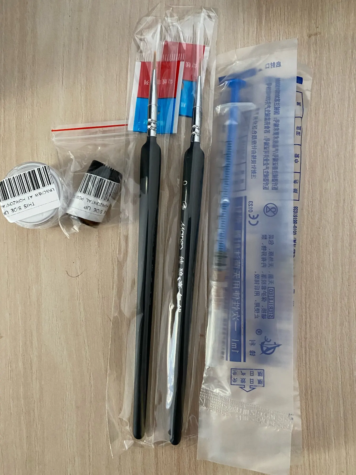 Товар прибыл довольно быстро. В комплект также входят 2 кисти. К сожалению, я также не получил шприцы, которые, похоже, получили в подарок.