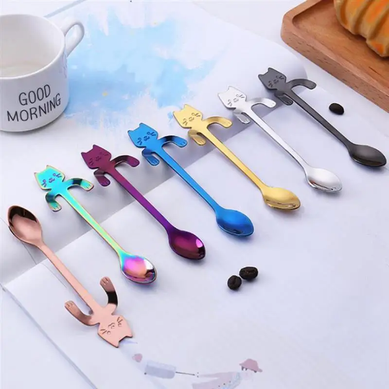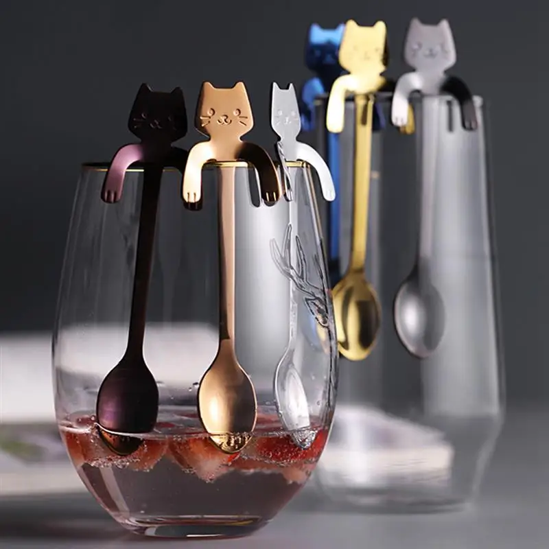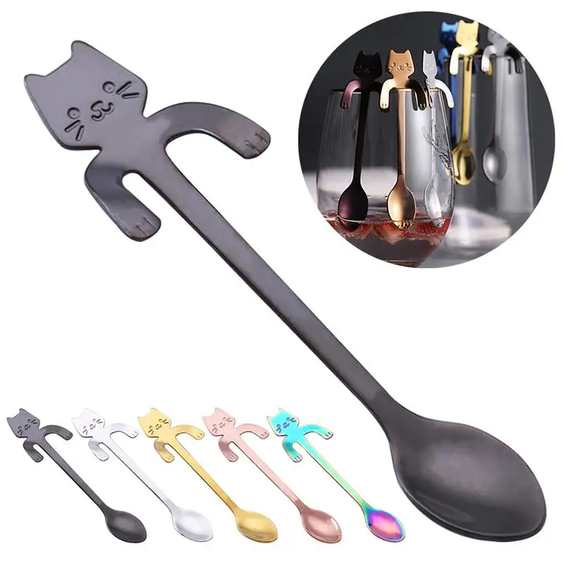 1 шт. Творческий Кофе ложка Нержавеющаясталь висит дизайном Кошечка ложка для эспрессо десертная ложка чашки аксессуары для ванной комнаты