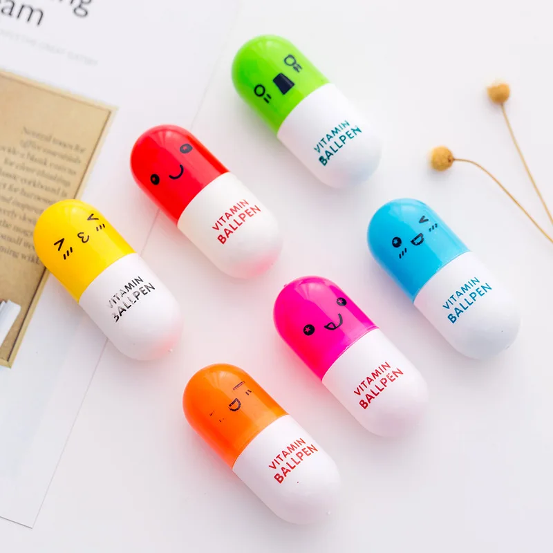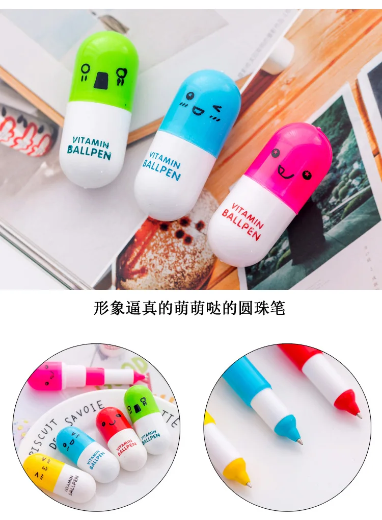 30 Pcs Ball Point Pens Manufacturer Wholesale Creative Cute Cartoon Pill Ball-point Pen Customize Gift Printing Wholesale