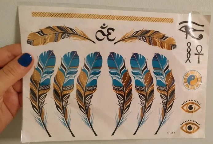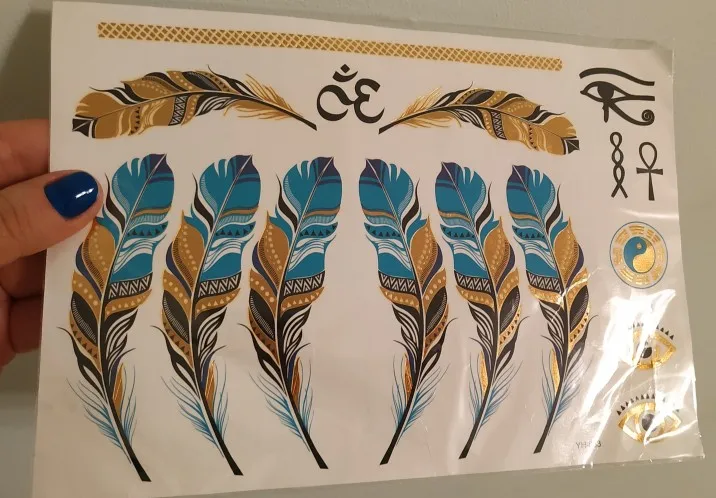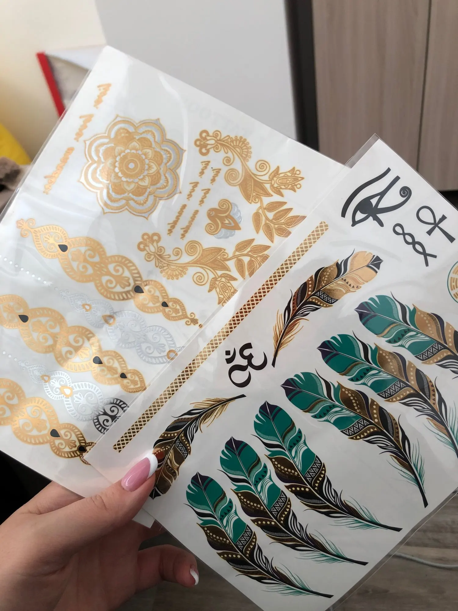 1 лист Flash Boho металлические золотые перья мерцающие ювелирные изделия праздничные временные татуировки