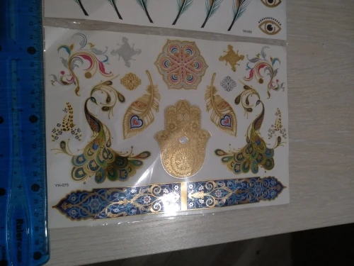 заказ доставлен за три недели в Петербург. он полностью отслеживался. я заказывала у продавца шесть листов определенного вида татуировок. в итоге получила только три листа из тех, что заказывала. остальные продавец не прислал, видимо закончились. зато накидал вместо отсутствующих другие листы, в превосходящем количестве. реакция: ну такое. вроде и спасибо ему, но я хотела именно те. в общем я довольна. цвета очень насыщенные. татуировки перестают блестеть и меркнут на второй-третий день. снимаются легко, можно просто пальцем скатать, можно махровым (полотенцем) потереть и она сойдёт. если на вечер, в образ, то норм будет.