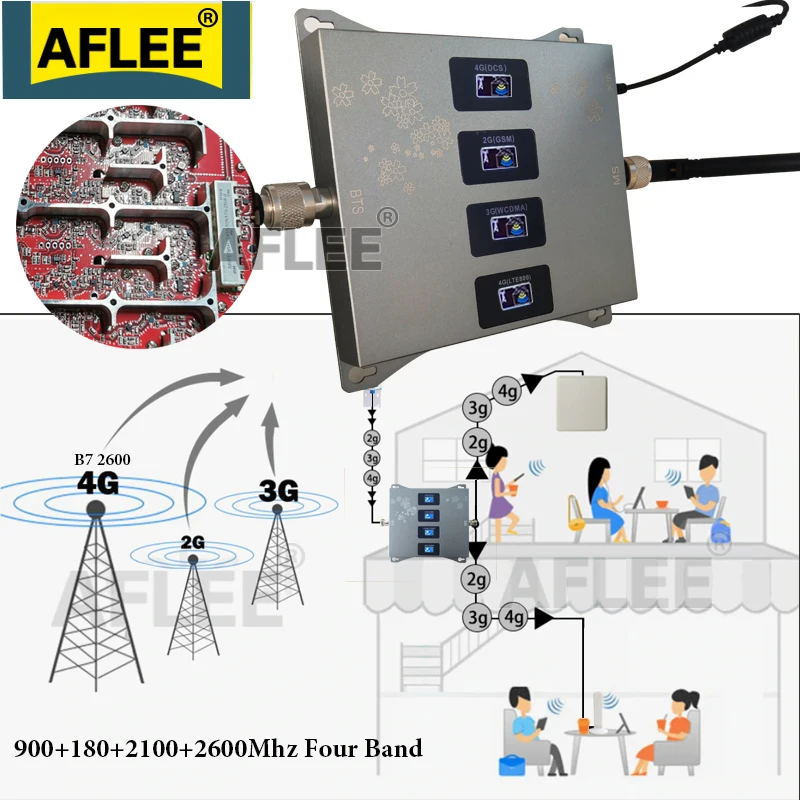 Четырехдиапазонный Усилитель сотового сигнала GSM 2G 3G 4G 900 1800 2100 2600 МГц 2g 3g 4g Сеть мобильный усилитель 4G DCS WCDMA LTE