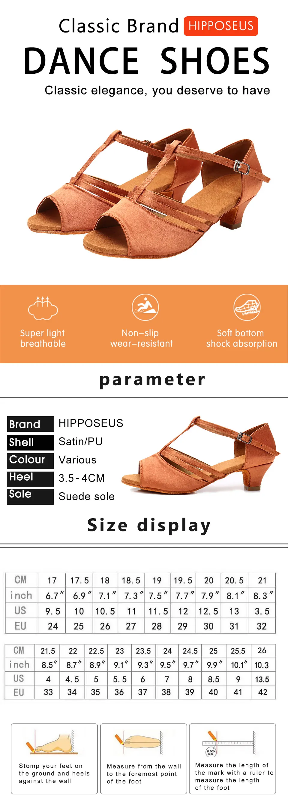 Обувь для латиноамериканских танцев Hipposeus для девочек; Женская Обувь для бальных танцев; Современная танцевальная обувь для танго; Обувь на каблуке 4 см; Прямая поставка