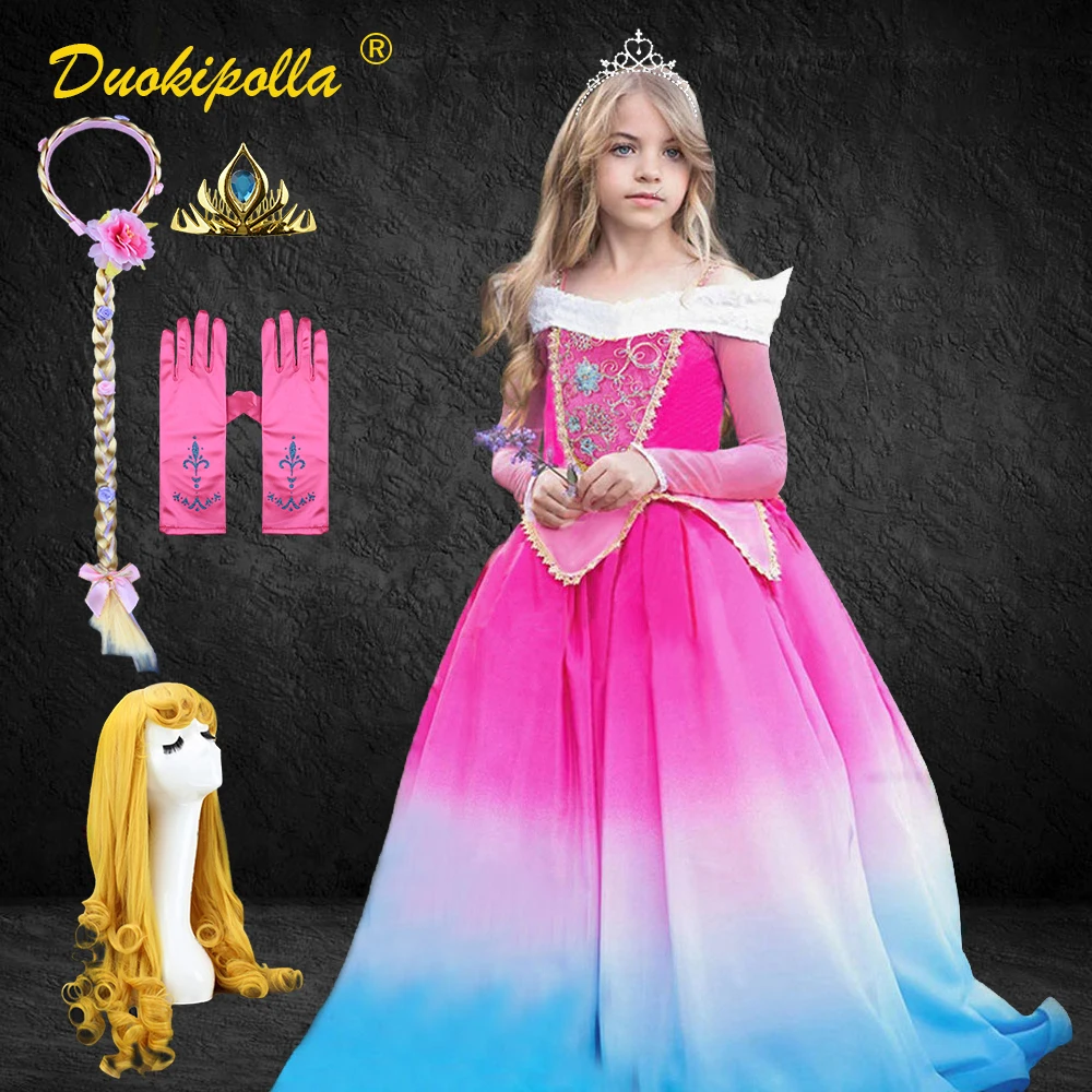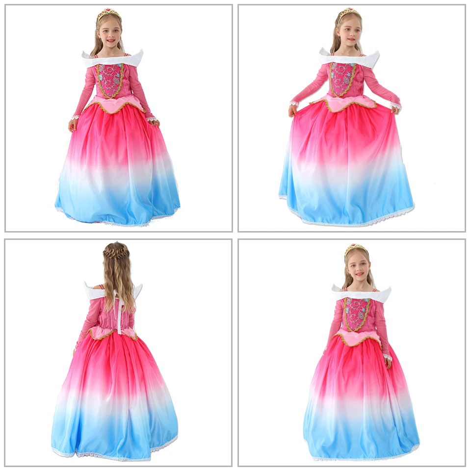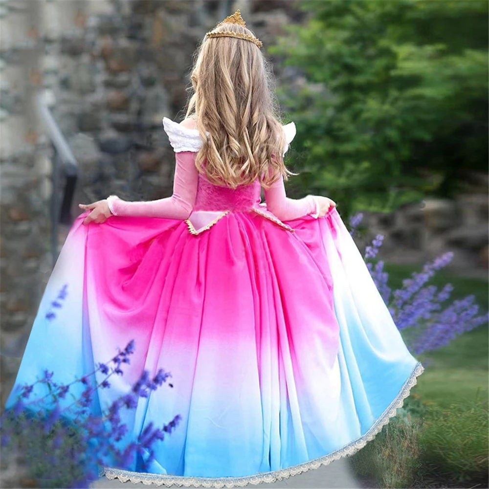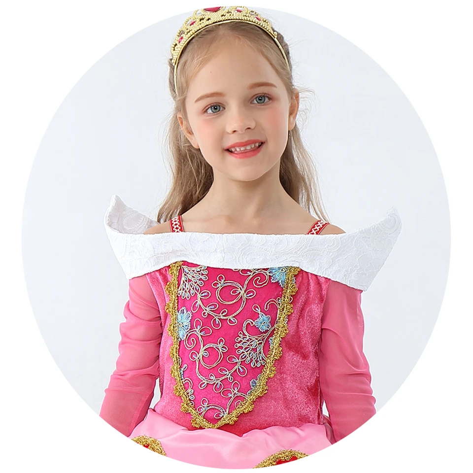 Детское красивое платье для сна, платье принцессы Авроры на Рождество для девочек, Летнее Детское розовое Элегантное свадебное платье, карнавальный костюм