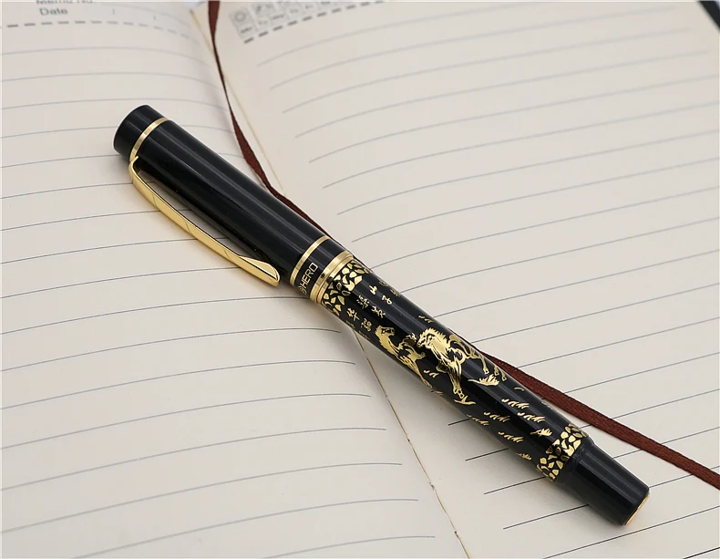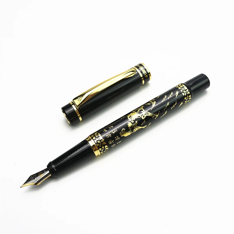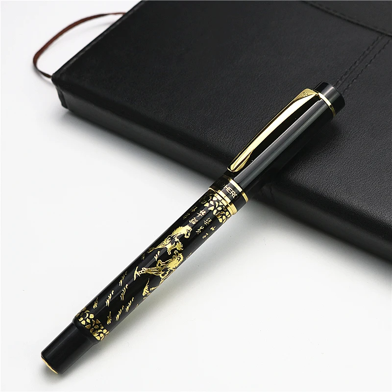 Черная металлическая ручка с узором в виде восьми лошадей, перьевая ручка Hero