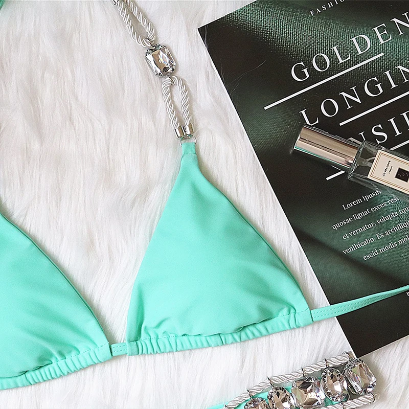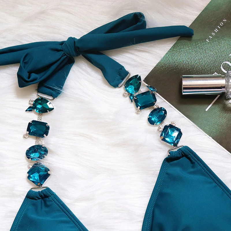 Пикантные бикини с эффектом пуш-ап Peachtan, 2021, Женский Хрустальный купальник, женский купальник с узлом, купальный костюм, экстремальные бикини