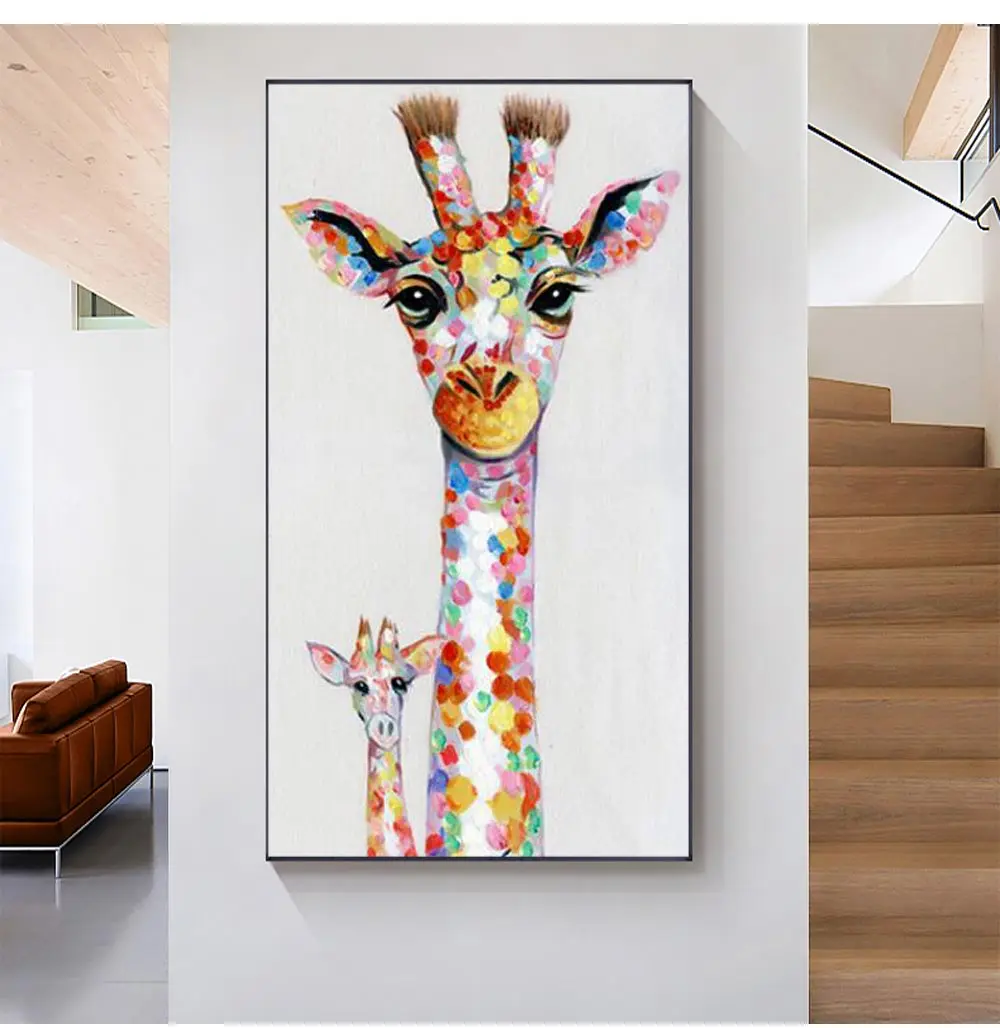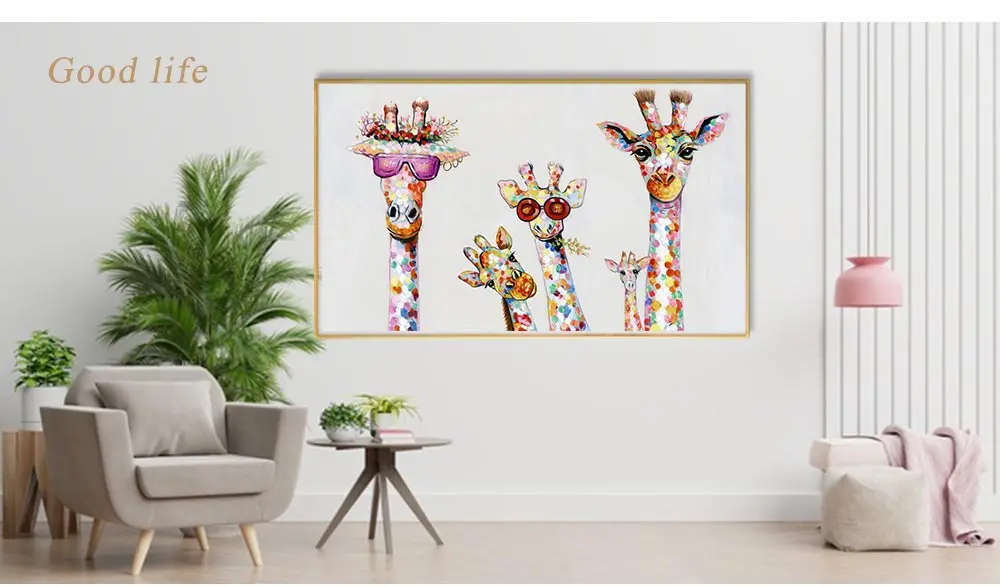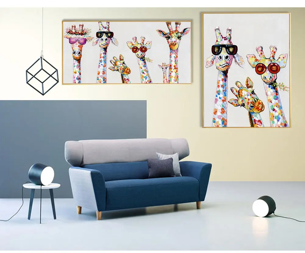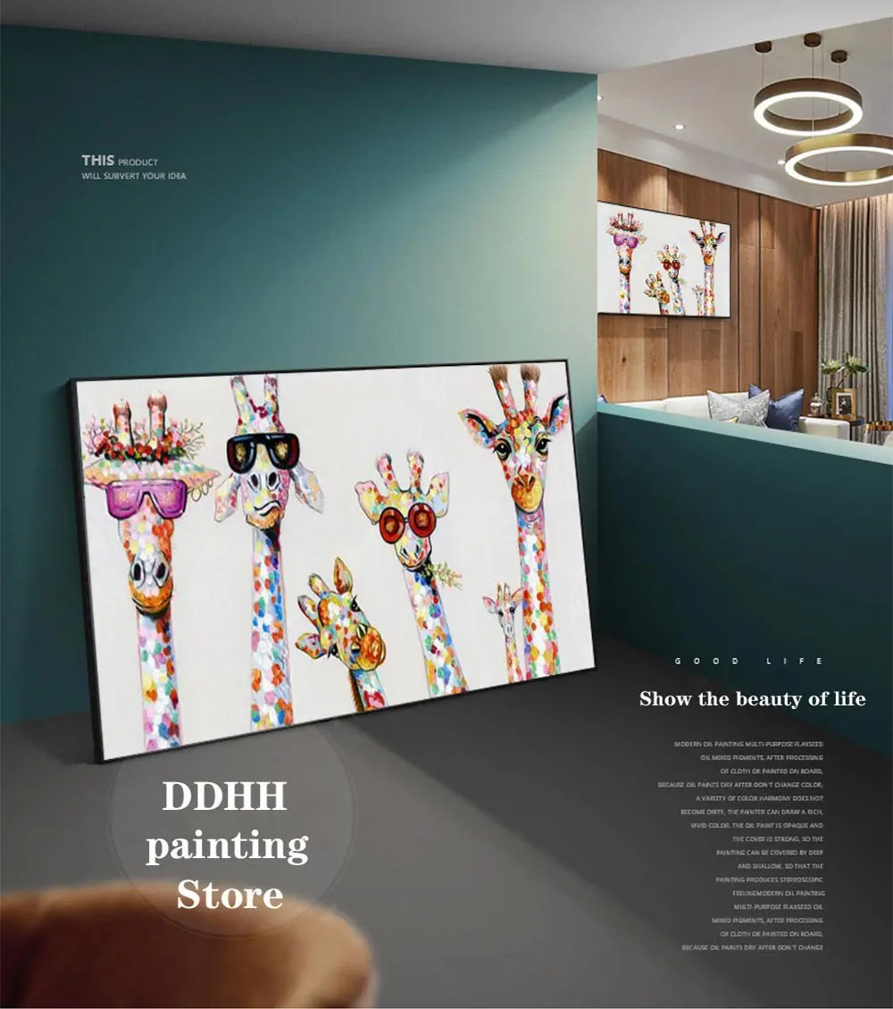 DDHH настенная живопись, холст, цветная картина с животными, жираф, картина для гостиной, домашний декор, без рамки