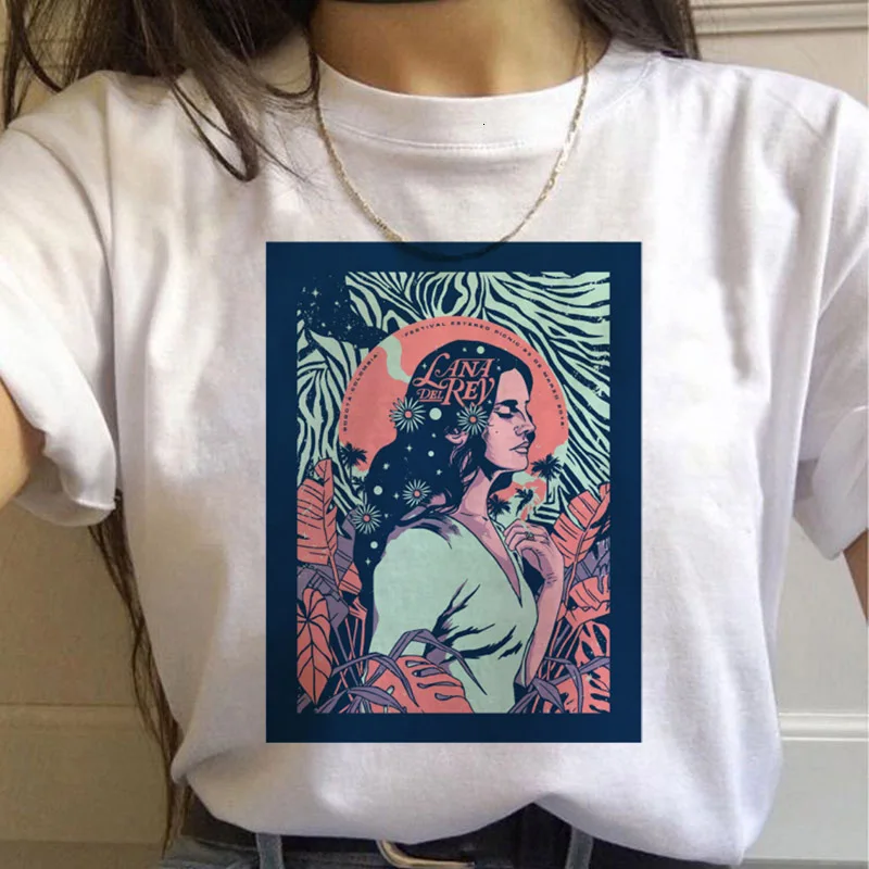 Женская футболка Лана Дель Рей с надписью "; Летняя футболка с О-образным вырезом Футболка дамского фасона Повседневные принты футболка костюм с футболкой в Корейском стиле для женщин