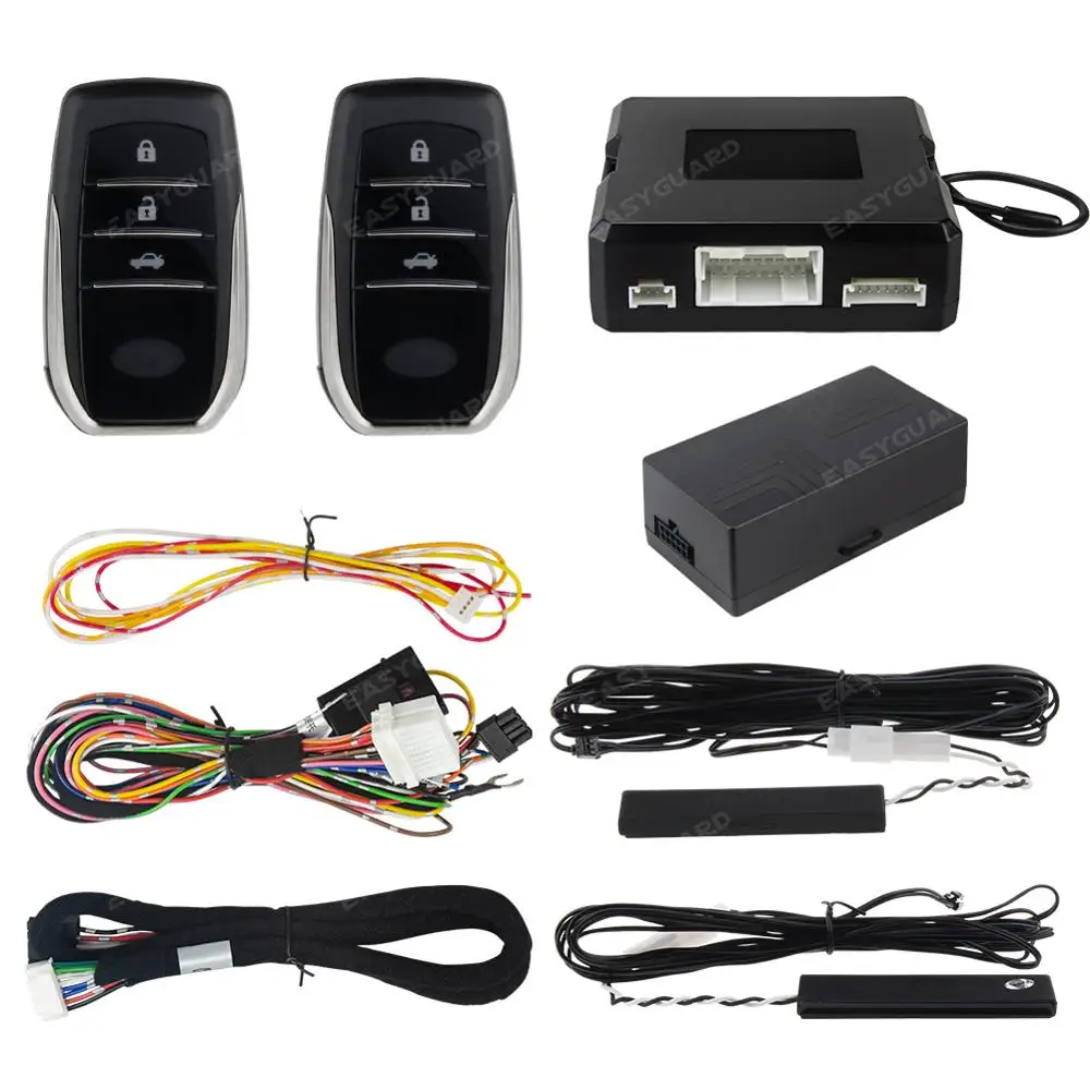 Это интеллектуальная Автосигнализация EASYGUARD EC211-T2 PKE, пассивная система дистанционного запуска двигателя без ключа, совместимая с кнопкой пуска OEM от производителя TOYOTA.