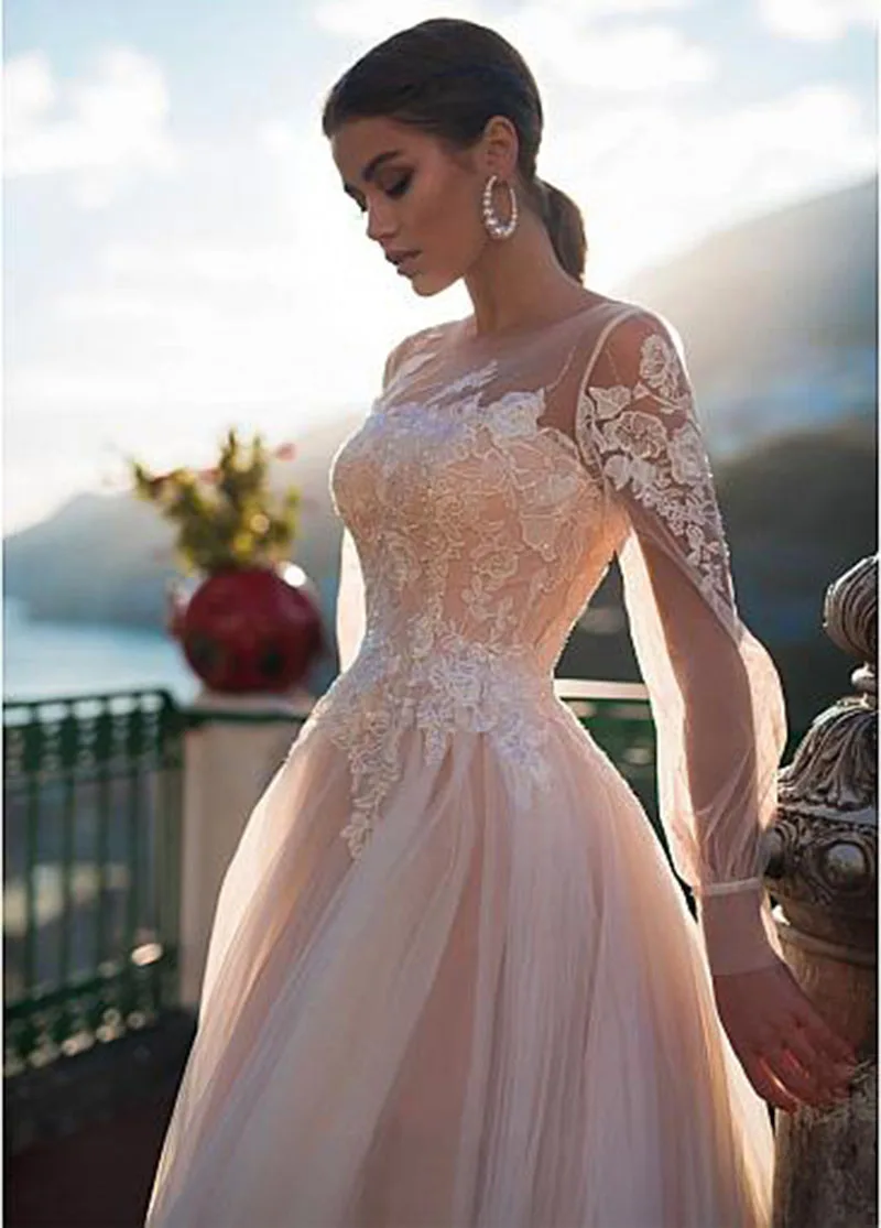 Женское свадебное платье с длинными рукавами, Кружевная аппликация ...