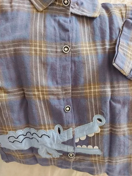 Рубашка выполнена из хлопка и полиэстера. Материал плотный, приятный к телу! Все швы прошиты ровно и аккуратно! Никакого дискомфорта ребёнок не испытывает! Качество потрясающее. ⠀ С размерной линейкой продавца все в порядке. Она соответствует действительности. На свой рост 98 см, мы взяли размер 3Т. Нам в самый раз. Рубашка с отложным воротником, все лэйблы и этикетки имеются, рубашка до середины попки. Стирала я на обычном режиме при температуре 40°С, рубашка не деформировалась и не полиняла! Будем носить с удовольствием! ⠀ Доставка до Омска осуществлялась в течении 2 недель. Рубашка пришла в обычном почтовом пакете + индивидуальная упаковка продавца. Трек номер отслеживался на всем пути следования. При транспортировке ничего не постралало.