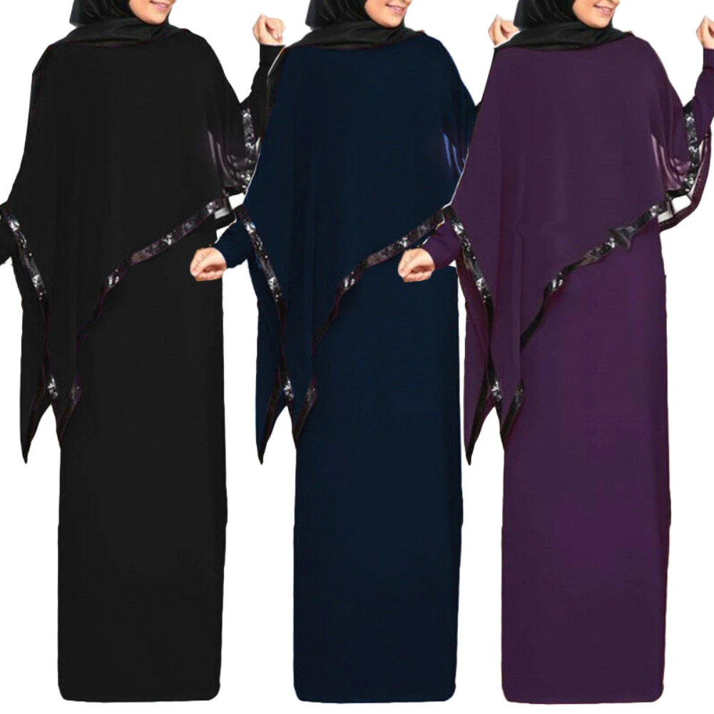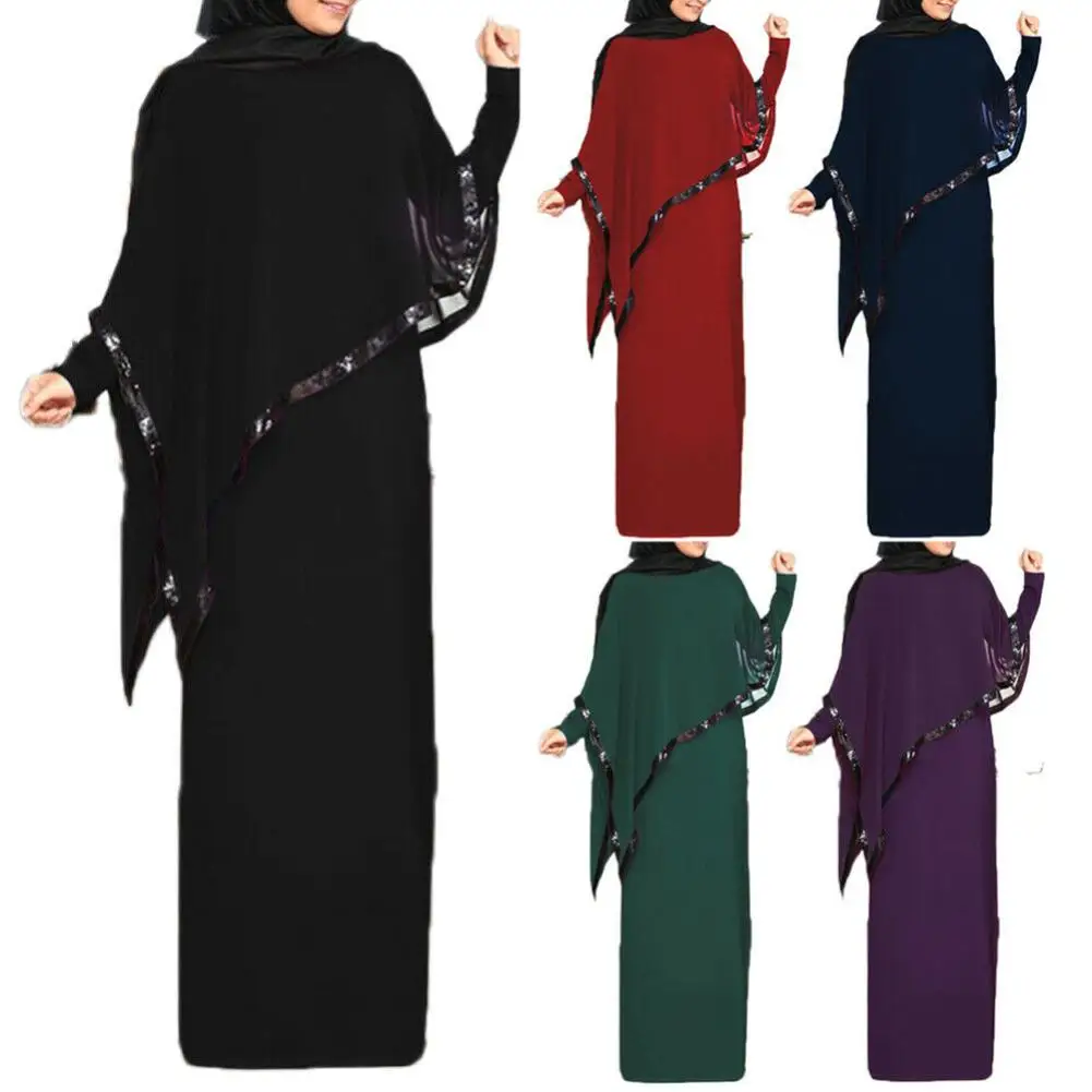 Мусульманское платье абайя, женское поддельное платье из двух частей, асимметричная шаль, макси-кафтан, джилбаб