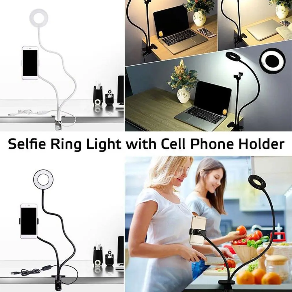 2-в-1 держатель сотового телефона со светодиодный селфи кольцо светильник для трансляция держатель для мобильного телефона