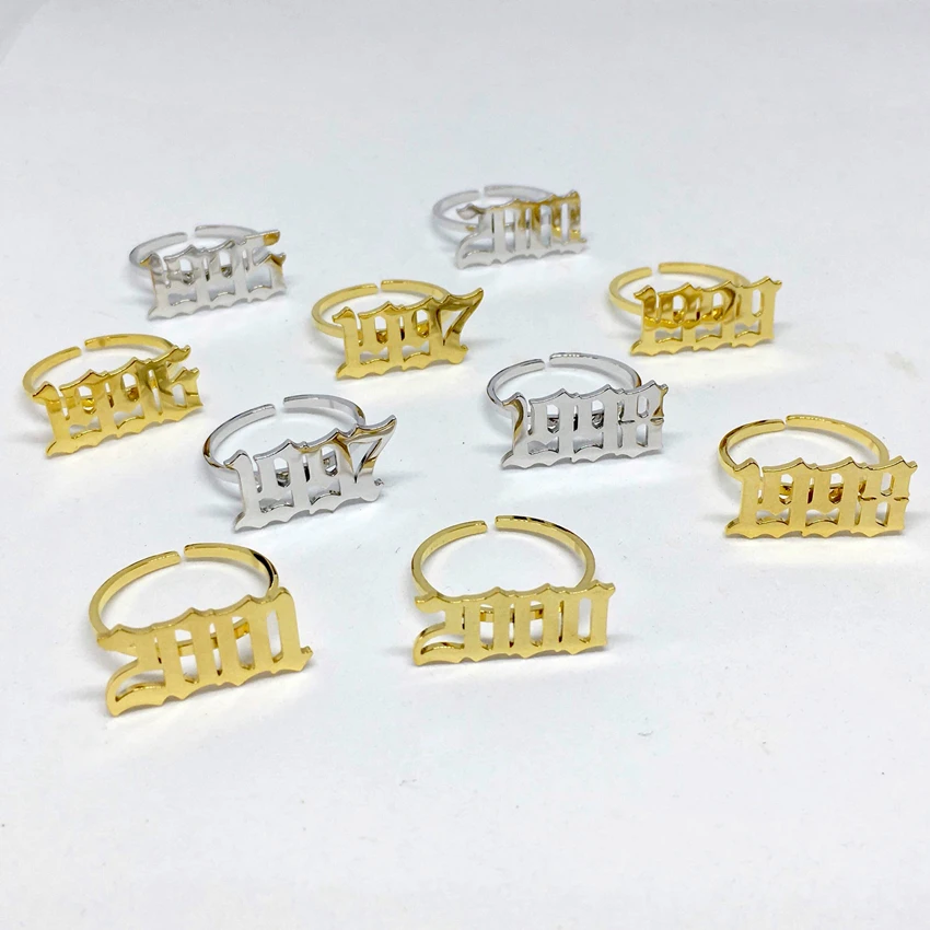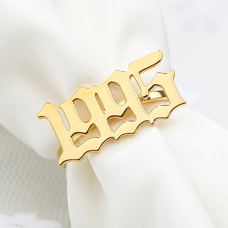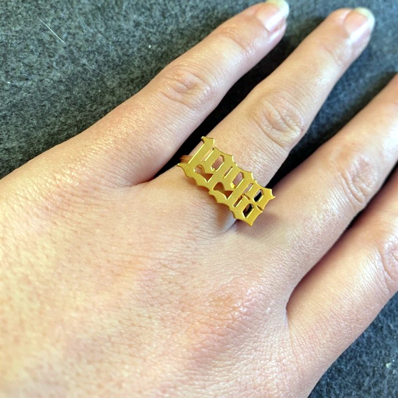 Кольца с цифрами на английском в старинном стиле, из нержавеющей стали