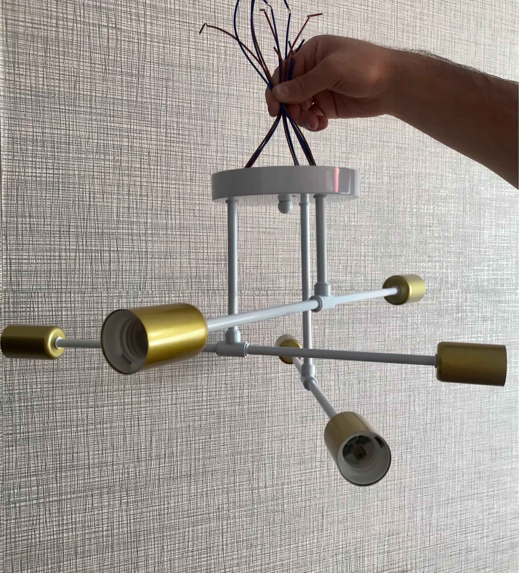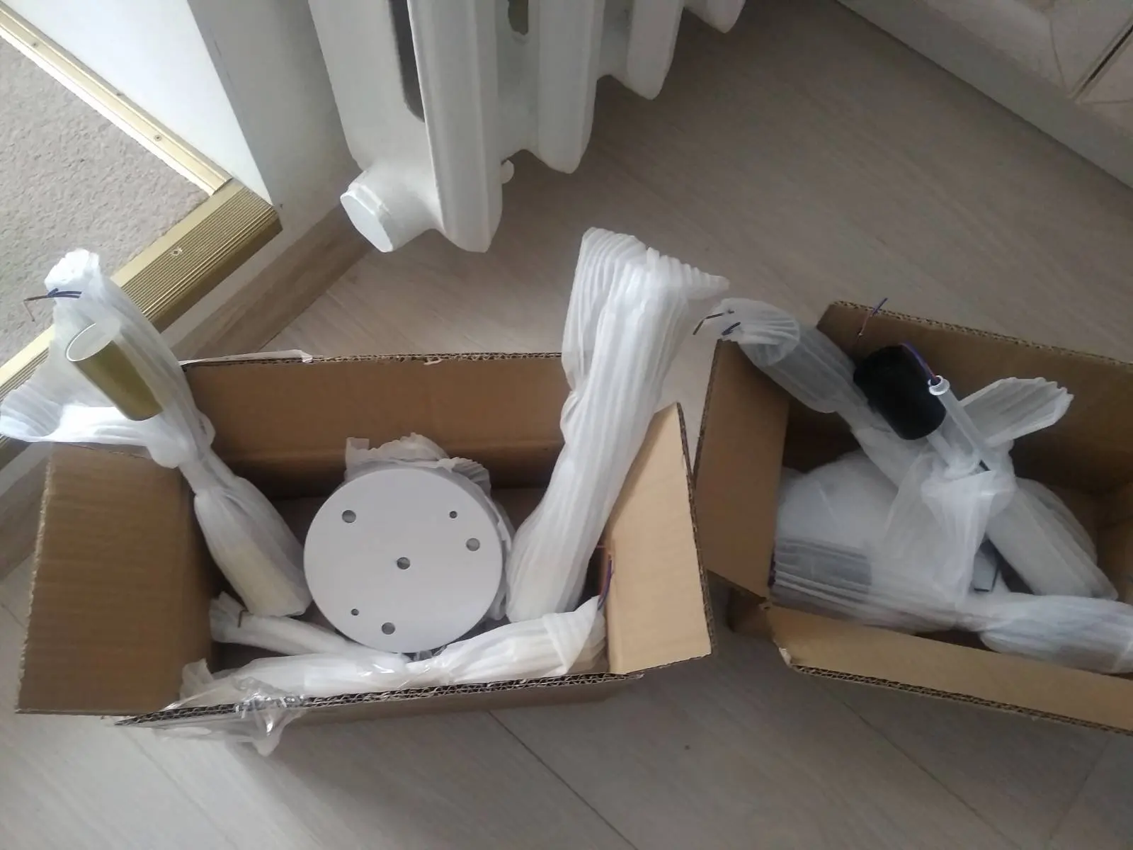 Доставка быстрая, курьер до двери привёз. Заказывала 01.06, доставили 10.06. Товар хорошего качества, в коробке хорошо всё упаковано. Осталось собрать и повесить.( дополню отзыв после установки светильников)
