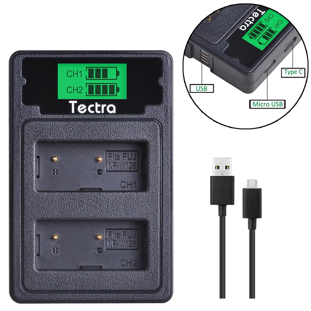 Аккумулятор NP W126 NP-W126 1400 мАч + двойное зарядное устройство со встроенным USB-дисплеем для камеры FUJIFILM X100V X-T200 X-T100 X-T3 X-A2 X-A7 X-E2 X-E3 X-H1