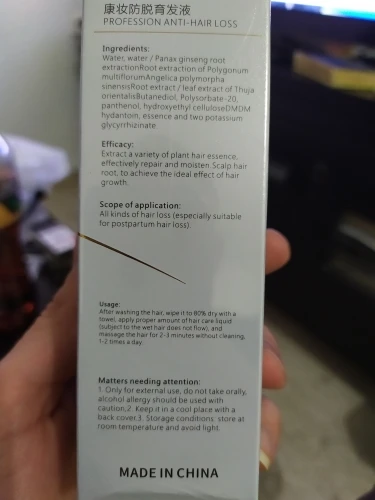 Я купил это, потому что недавно путешествовал за границей, и мое питание было плохим. Каждый раз, когда я поливаю волосы или принимаю душ, я чувствую сильную потерю волос. Я определил, что это хороший продукт, потому что в последние дни я не наполнил расческу волосами. Я недавно покрасила волосы две недели назад и на этой неделе обратила внимание на сильный рост корней.