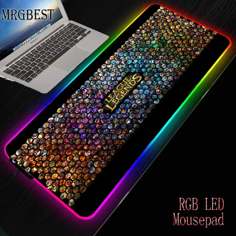 Коврик для мыши MRGBEST в стиле аниме Лига Легенд, с RGB-подсветкой, для настольной клавиатуры Mause XXL, компьютерный коврик Csgo L