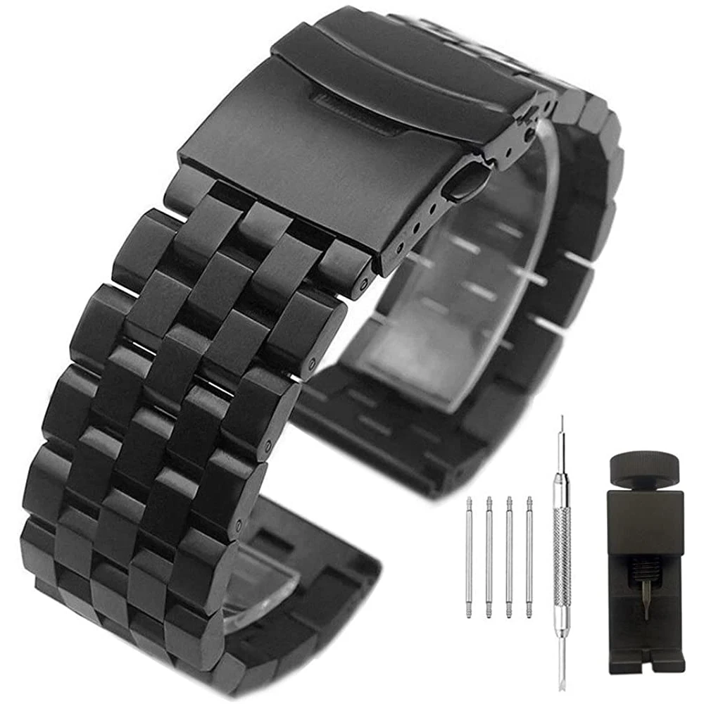 Матовый ремешок для часов из нержавеющей стали 18 мм20 мм22 мм24 мм26 мм, металлический сменный браслет для мужчин и женщин, черныйискусственный