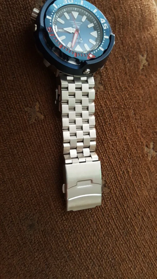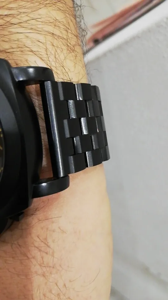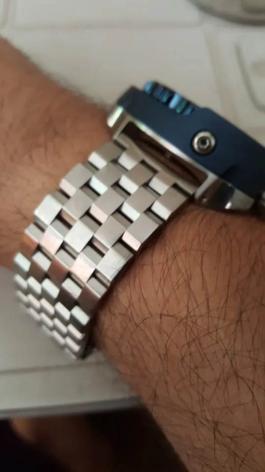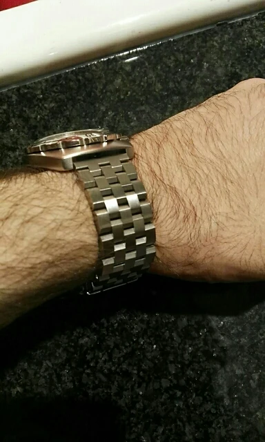 Браслет высокого качества. Резьбовые звенья. Довольно длинный. Мне нужно было удалить все 6 звеньев, чтобы соответствовать 7 "запястье (и 45 мм часы).