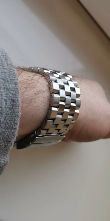 Ремешок шикарный,выглядит превосходно. Очень увесистый,но я отношу это к плюсам. В наборе есть все необходимое для работы со звеньями. Очень быстро доставили курьером,а вот часы к нему жду уже больше месяцаВ общем,стоит своих денег.