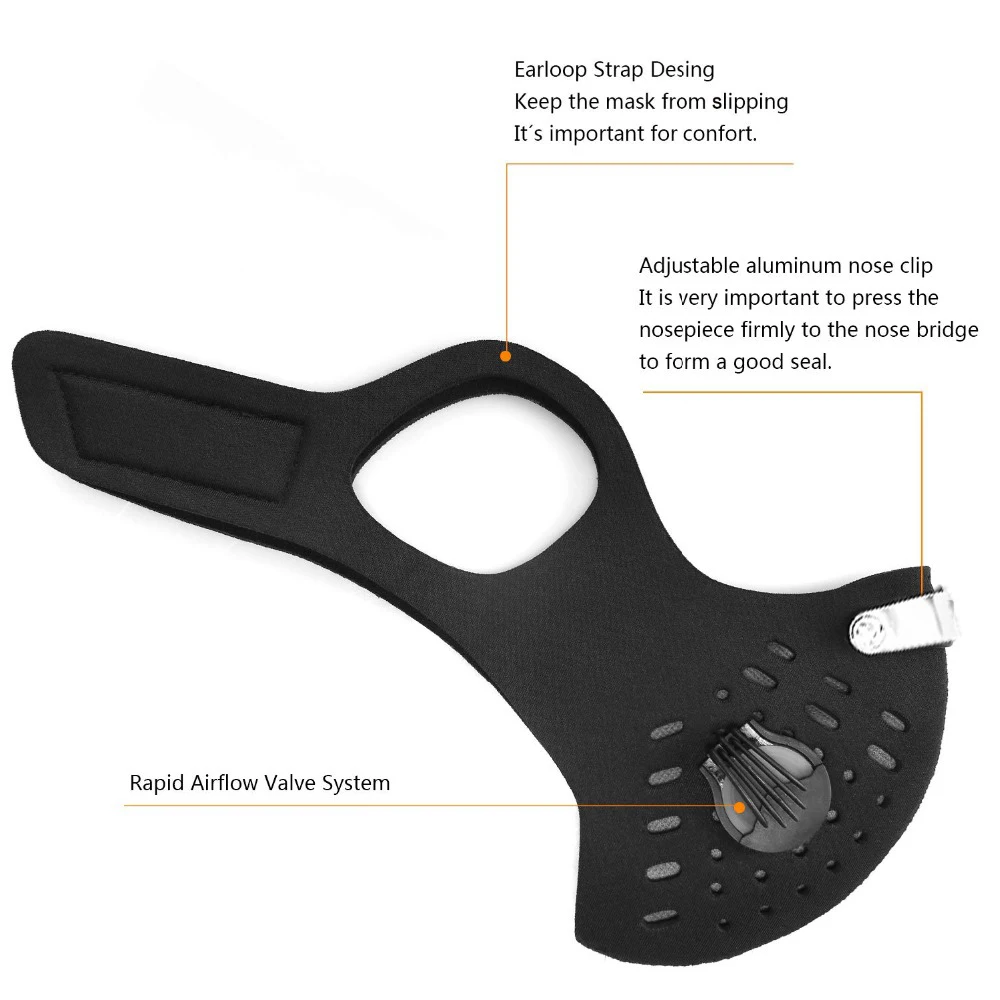 Уличная маска с фильтром с активированным углем PM 2,5 защита от загрязнения лица маски пыленепроницаемый ветрозащитная тренировочная маска для рта респиратор