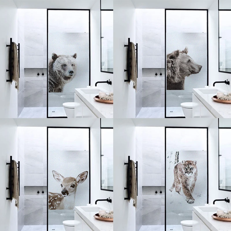 Матовая пленка для окон, Виниловая пленка для витража, наклейки на окна стекло наклеек на стекло, с изображением лесных животных, для душа, дверей, без клея