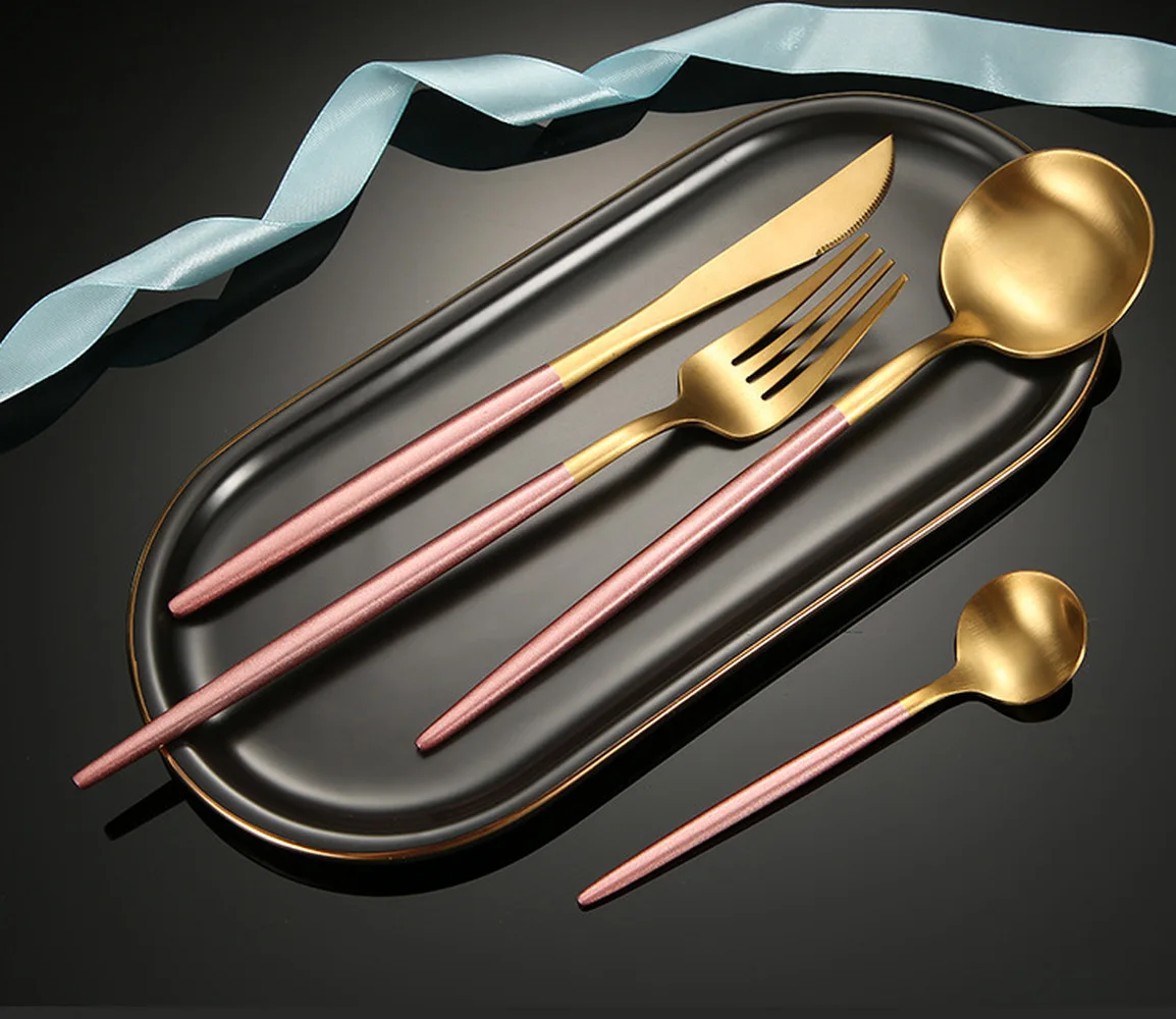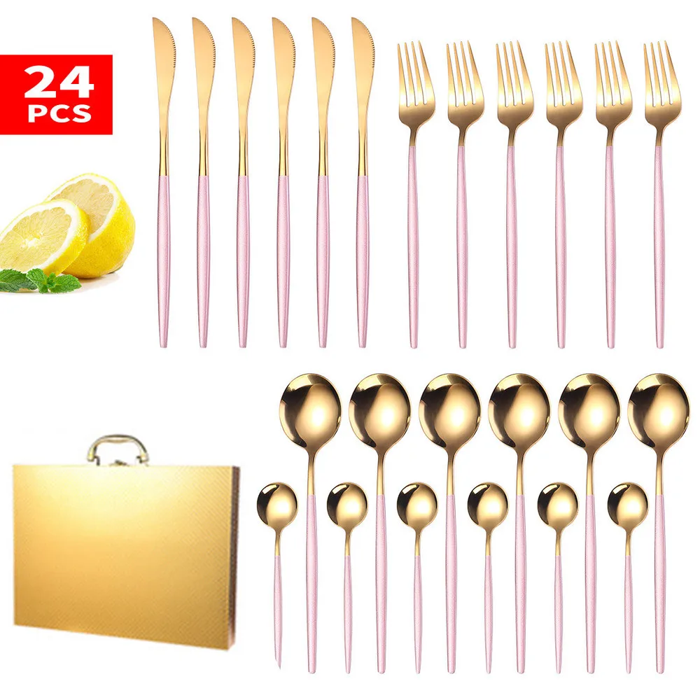 Набор золотой посуды из нержавеющей стали, 24 шт.компл., розовое золото, столовый нож, вилка, ложка, Столовый Набор для кухни, столовая посуда, набор серебряных приборов