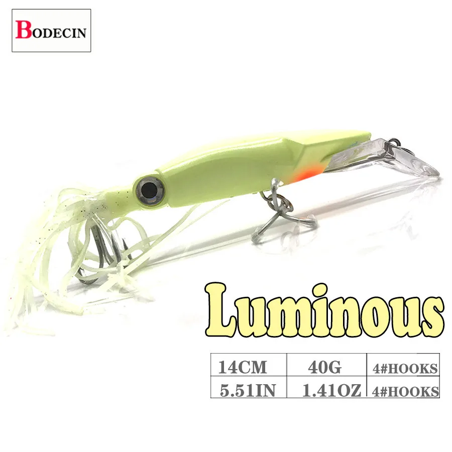 1 шт., рыболовная приманка, лобблер-осьминог, искусственная приманка, троллинг, светящийся/УФ-кальмар, 40 г, с тройным крючком, юбка для ловли тунца, 14 см