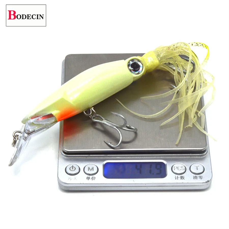 Рыболовная приманка, 1 шт., воблер в виде осьминога, искусственная приманка для троллинга, светящаясяУФ-кальмара, 40 г, с тройным крючком, юбка для тунца, 14 см