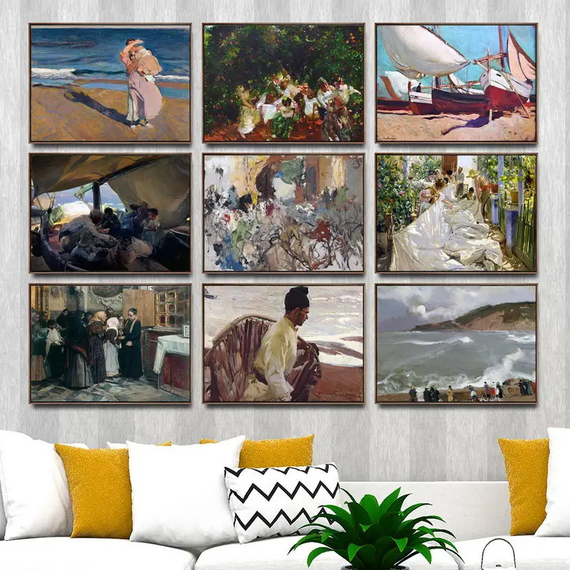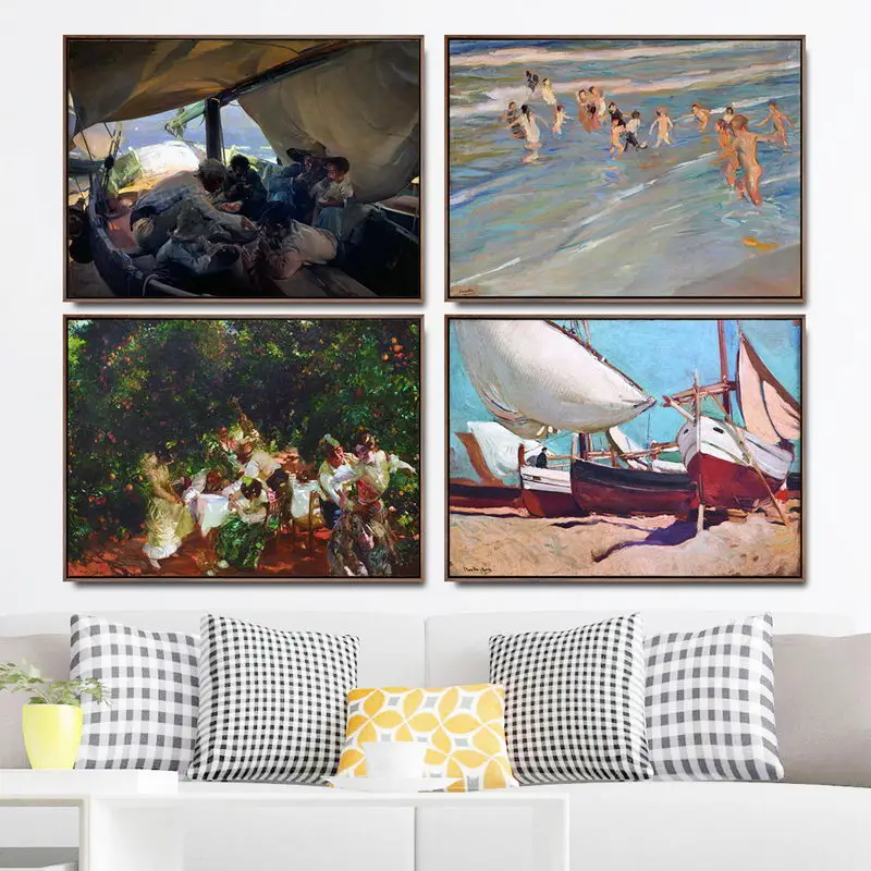 Настенная живопись, Декор для дома, холст, испанская картина Joaqun Sorolla, пейзаж, акварель, скандинавский постер, Модульная картина для спальни
