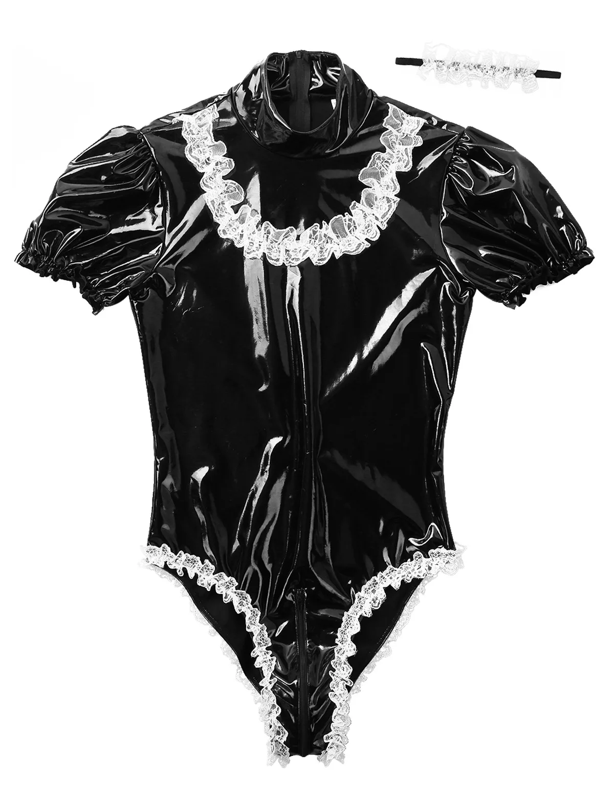 Особенности: Мужской взрослый мокрый вид, горничная Сисси, косплей костюм, набор для ролевых игр на Хэллоуин, сделает вас соблазнительной и соблазнительной. Высокая горловина и короткие пышные рукава, с рюшами на шее и отверстиями для ног. Двусторонняя молния проходит от задней шеи до передней промежности для удобства одевания. В сочетании с эластичной кружевной повязкой на голову. Изготовлены из высококачественной лакированной кожи, очень мягкие и удобные в носке, приятные на ощупь. Идеально подходит для ночного клуба, ролевой игры, карнавальные костюмы вечерние, карнавал, тематических вечеринок и Хэллоуина. Перед покупкой проверьте таблицу размеров, рекомендуется ручная стирка.