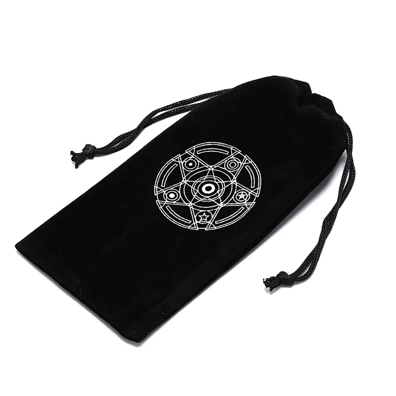 Тип: сумка для хранения карт ТароМатериал: бархатЦвет: черныйРазмер: 10 см x 19 ммВ комплект входит: 1 сумка для хранения карт Таро