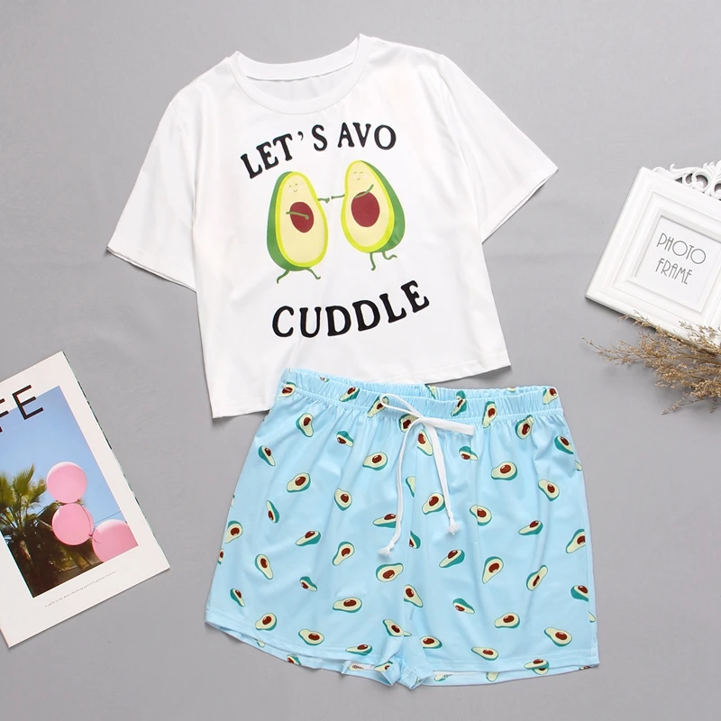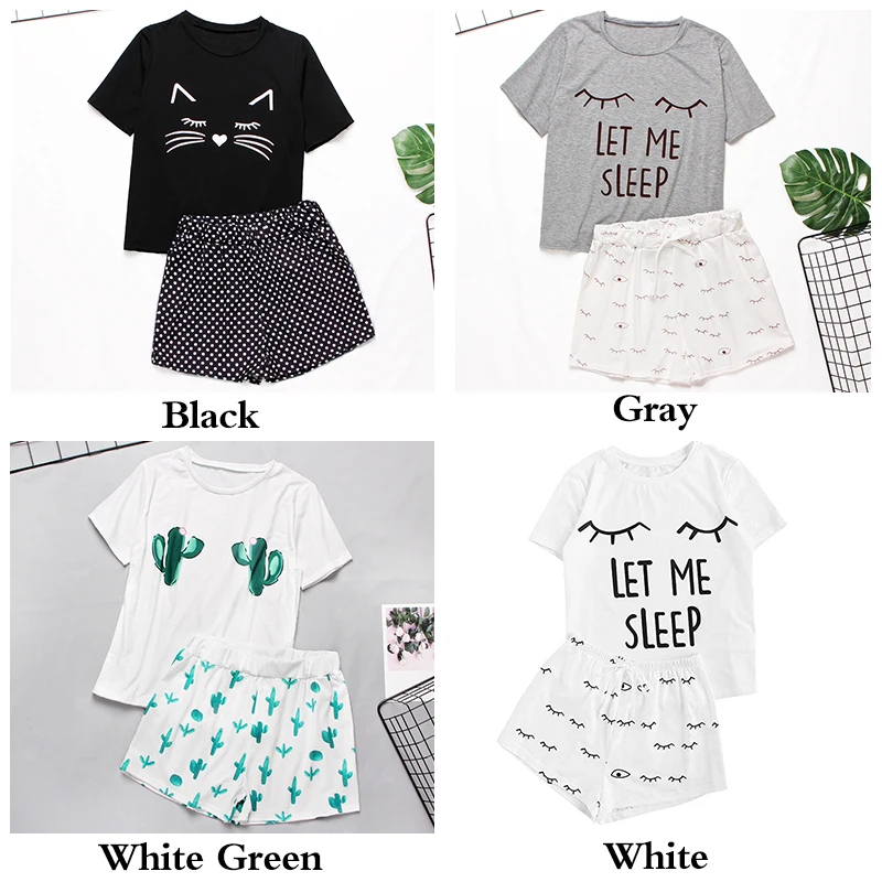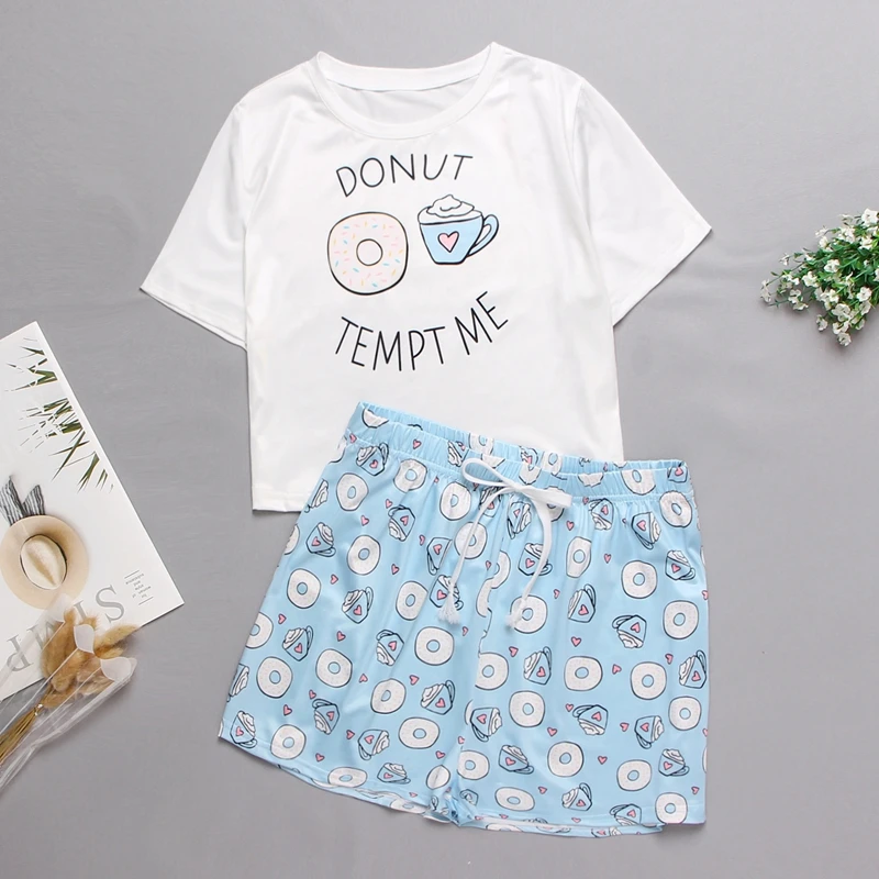 Комплект пижамный Женский, с коротким рукавом и мультяшным принтом