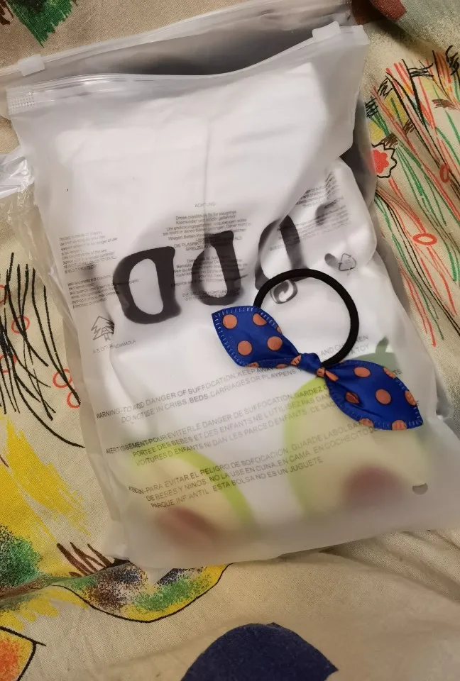 Принт действительно приятный, и продавец приложил к упаковке милую ленту для волос. Доставка была немного хлопотной, так как в первый раз посылка была отменена, но через несколько дней она была снова включена.